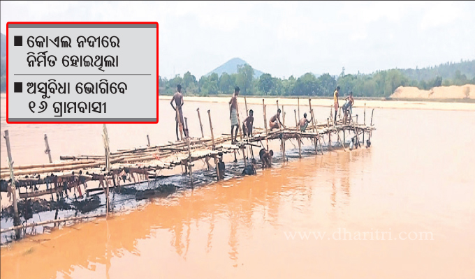 କୁଆଁରମୁଣ୍ଡା ବ୍ଲକ ଝାରବେଡା ଓ କଚାରୋ ଗ୍ରାମପଞ୍ଚାୟତ ଅଧୀନ ୧୬ ଗ୍ରାମବାସୀ ରାଉରକେଲା ସହରକୁ ହମିରପୁର ନଦୀଘାଟ ଦେଇ ଯାତାୟାତ କରିଥାନ୍ତି। ଏଥିପାଇଁ ରାଜସ୍ବ ବିଭାଗ ପକ୍ଷରୁ କୋଏଲ ନଦୀରେ ହମିରପୁରଠାରୁ-ପସରା ଯାଏ ୧କିମି ବିଶିଷ୍ଟ ଅସ୍ଥାୟୀ ବାଉଁଶ ପୋଲ ତିଆରି କରାଯାଇଛି। ଏହାକୁ ଜଣେ ଠିକାଦାର ନିଲାମ ସୂତ୍ରରେ ନେଇ ରାଉରକେଲା ସହରକୁ ଆସୁଥିବା ଲୋକଙ୍କ ମୁଣ୍ଡ ପିଛା ୧୦ଟଙ୍କା ଲେଖାଏଁ ଟିକସ ଆଦାୟ କରୁଥିଲେ। ଫଳରେ ଏହି ବାଉଁଶ ପୋଲ ଦେଇ ହଜାର ହଜାର ଲୋକ ଯାତାୟାତ କରିପାରୁଥିଲେ। ମାତ୍ର ଗତ କିଛିଦିନ ଧରି ଲଗାଣ ବର୍ଷା ଯୋଗୁ ଝାଡ଼ଖଣ୍ଡ ଅଞ୍ଚଳରୁ ନିଷ୍କାସିତ ବନ୍ୟାପାଣି ସିଧାସଳଖ କୋଏଲ ନଦୀରେ ମିଶିବାରୁ ବୁଧବାର ବିଳମ୍ବିତ ରାତିରେ ଅସ୍ଥାୟୀ ବାଉଁଶ ପୋଲ ଭାସିଯାଇଛି। ତେବେ ବିଳମ୍ବିତ ରାତିରେ ପୋଲ ଭୁଶୁଡି ପଡିଥିବାରୁ କୌଣସି ଧନଜୀବନ ନଷ୍ଟ ହୋଇ ନ ଥିବା କୁହାଯାଇଛି। ଅନ୍ୟପକ୍ଷେ ଲୋକମାନଙ୍କ ଯାତାୟାତ ଲାଗି ନଦୀରେ ଡଙ୍ଗା ବ୍ୟବସ୍ଥା କରାଯିବ ବୋଲି ଠିକା ସଂସ୍ଥା ପକ୍ଷରୁ କୁହାଯାଇଛି । ଏ ନେଇ ସ୍ଥାନୀୟ ଅଞ୍ଚଳର ଅନୀଲ ଏକ୍କା କୁହନ୍ତି, ମିଟକୁନ୍ଦ୍ରୀ ବିଜୁ ସେତୁ ନିର୍ମାଣ କାର୍ଯ୍ୟ ଦୀର୍ଘ ୪ବର୍ଷ ତଳୁ ଚାଲିଥିବା ବେଳେ ବର୍ତ୍ତମାନ ଅଧାପନ୍ତରିଆ ଅବସ୍ଥାରେ ରହିଛି। ସେତୁ ନିର୍ମାଣ ହୋଇଗଲେ କୁଆଁରମୁଣ୍ଡା ବ୍ଲକ ଅଞ୍ଚଳର ଲୋକମାନେ ଉପକୃତ ହେବେ। ଏଥିସହ ଉକ୍ତ ୧୬ଟି ଗାଁକୁ ମୋ ବସ ଚଳାଚଳ କରାଗଲେ କୋଏଲ ନଦୀରେ ବିପଦପୂର୍ଣ୍ଣ ଯାତ୍ରା ସମସ୍ୟାର ସମାଧାନ ହୋଇପାରନ୍ତା ବୋଲି ସେ କହିଛନ୍ତି। ଏ ସମ୍ପର୍କରେ ରାଉରକେଲା ଭାରପ୍ରାପ୍ତ ତହସିଲଦାର ଶ୍ରୀମତୀ ଚାନ୍ଦନୀଙ୍କୁ ପଚାରିବାରୁ ଏହି ସମସ୍ୟା ନେଇ ହମିରପୁର ରାଜସ୍ବ ସର୍କଲ ଦାୟିତ୍ୱରେ ଥିବା ରାଜସ୍ବ ନିରୀକ୍ଷକଙ୍କ ସହ ଆଲୋଚନା କରି ସ୍ଥାୟୀ ସମାଧାନ ପାଇଁ ପଦକ୍ଷେପ ଗ୍ରହଣ କରାଯିବ ବୋଲି ସେ କହିଥିଲେ।