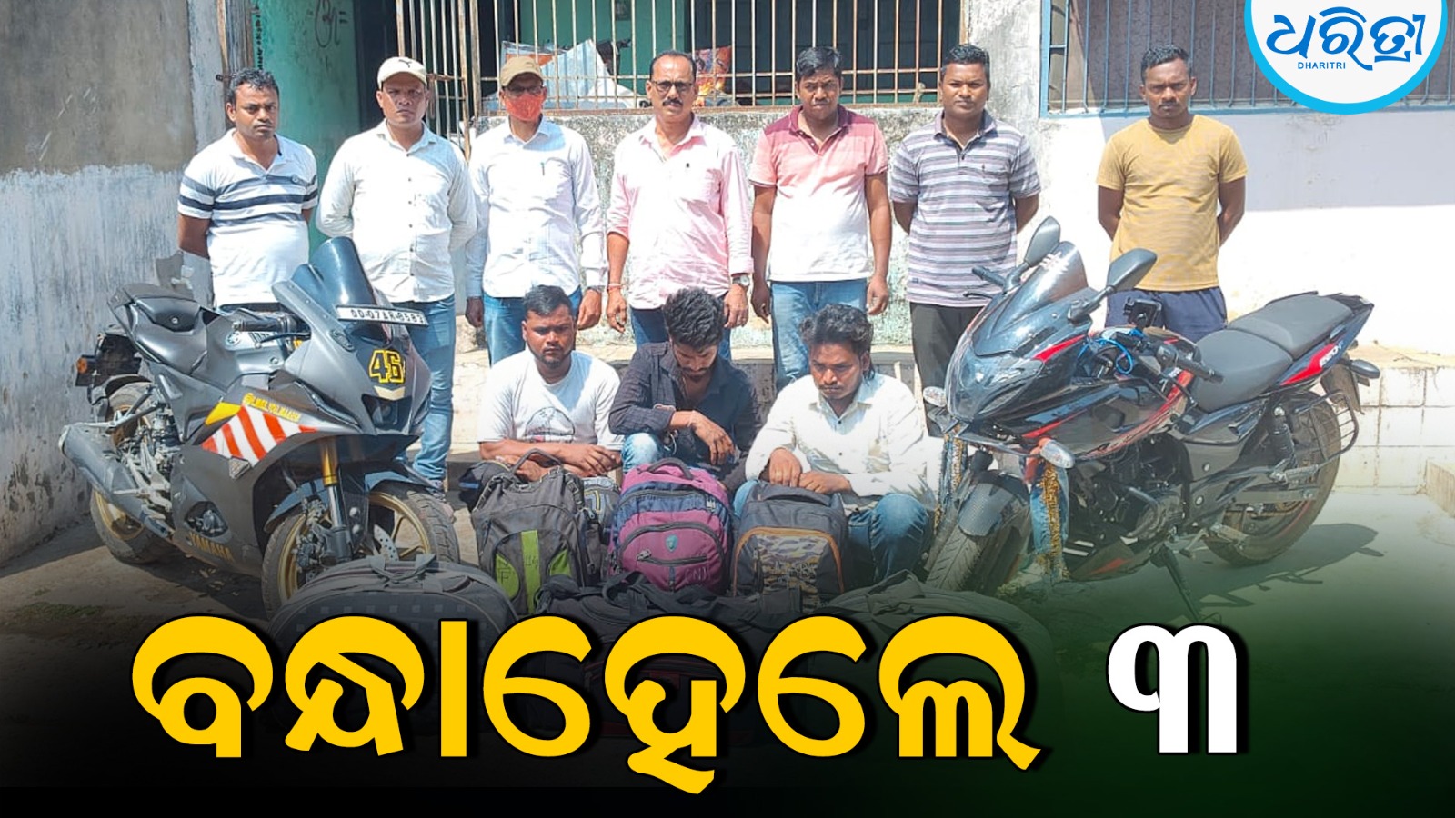 ବ୍ରହ୍ମପୁର,୨ା୩(ସୁବାସ ଚନ୍ଦ୍ର ପାଢ଼ୀ): ରବିବାର ଅବକାରୀ ଭ୍ରାମ୍ୟମାଣ ସଂସ୍ଥା ପକ୍ଷରୁ ବ୍ରହ୍ମପୁର ରେଳଷ୍ଟେଶନ ନିକଟ ନେହେରୁ ପାର୍କ କଡ଼ରୁ ୩ ଯୁବକଙ୍କୁ ଅଟକାଇ ସେମାନଙ୍କ ନିକଟରେ ଥିବା ଏୟାର ବ୍ୟାଗଗୁଡ଼ିକ ଯାଞ୍ଚ ବେଳେ ସେଥିରୁ ୧୧୦କେଜି ଗଞ୍ଜେଇ ଜବତ କରାଯାଇଛି। ଗିରଫ ଯୁବକମାନେ ହେଲେ ଗଜପତି ଜିଲା ମୋହନା ଥାନା ଅନ୍ତର୍ଗତ କିଡାସିଂ ଗ୍ରାମର ରାମଚନ୍ଦ୍ର ଗୌଡ଼ (୨୮), ଶ୍ରୀଶାନ୍ତ ଗୌଡ଼(୨୪) ଓ ଗଞ୍ଜାମ ଜିଲା କେ. ନୂଆଗାଁ ଥାନା ଅଞ୍ଚଳର କକୁଳୁ ନାୟକ(୨୪)। ଗଞ୍ଜେଇ ଚାଲାଣରେ ବ୍ୟବହୃତ ଦୁଇଟି ବାଇକ ଓ ତିନୋଟି ମୋବାଇଲ ମଧ୍ୟ ଜବତ କରାଯାଇଛି। ଜବତ ଗଞ୍ଜେଇ, ବାଇକ୍ର ମୂଲ୍ୟ ୧୩ ଲକ୍ଷ ହେବ ବୋଲି ଟିମ୍ ପକ୍ଷରୁ ସୂଚନା ଦିଆଯାଇଛି। ବ୍ରହ୍ମପୁର ରେଳଷ୍ଟେଶନକୁ ଗଞ୍ଜେଇ ଚାଲାଣ ହେଉଥିବା ଖବର ପାଇ ବିଭଗୀୟ ଅଧୀକ୍ଷକ ପ୍ରବୀଣ କୁମାର ପ୍ରଧାନଙ୍କ ନିର୍ଦ୍ଦେଶରେ ଏକ ଟିମ୍ ଗଠନ ହୋଇଥିଲା। ଉପଅଧୀକ୍ଷକ କୁମୁଦ ରଞ୍ଜନ କହଁର, ଇନ୍ସପେକ୍ଟର ମନୀଷା ଭୋଳ, ବି.ମନୋଜ କୁମାର, ଏସ୍ଆଇ ଏଭୁବନି ବେହେରା, କନଷ୍ଟେବଳ ଡି. ହରିବନ୍ଧୁ, ସୁଧାକର ଶବର, କୃଷ୍ଣ ଗୌଡ଼, ଅନିଲ ବେହେରା, କେ . ଗୋପାଳ ରେଡ୍ଡୀ, ସୌମ୍ୟ ରଞ୍ଜନ ଜେନା ପ୍ରମୁଖ ଉକ୍ତ ଚଢ଼ାଉରେ ସାମିଲ ଥିଲେ।