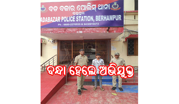 ବ୍ରହ୍ମପୁର,୨୭ା୭(ସୁବାସ ଚନ୍ଦ୍ର ପାଢ଼ୀ): ନାବାଳିକାଙ୍କୁ ବଳାତ୍କାର ଅଭିଯୋଗରେ ବଡବଜାର ଥାନା ପୋଲିସ ଜଣେ ଯୁବକଙ୍କୁ ଗିରଫ କରିଛି। ସେ ହେଉଛନ୍ତି ଲକ୍ଷ୍ମୀନୃସିଂହସାହି ୮ମ ଲାଇନର ସୀମାଞ୍ଚଳ ନାହାକ(୨୩)। ପୋଲିସ ଉଭୟ ପୀଡ଼ିତା ଓ ଅଭିଯୁକ୍ତଙ୍କ ଡାକ୍ତରୀ ମାଇନା କରାଇଛି।