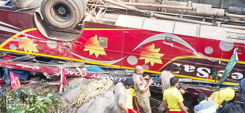 ଭୟଙ୍କର ଦୁର୍ଘଟଣା: ଡିଭାଇଡରରେ ପିଟି ହୋଇ ରାଜପଥରେ ଓଲଟିଲା ବସ୍, ୧୬ ଜଣଙ୍କ ମୃତ୍ୟୁ