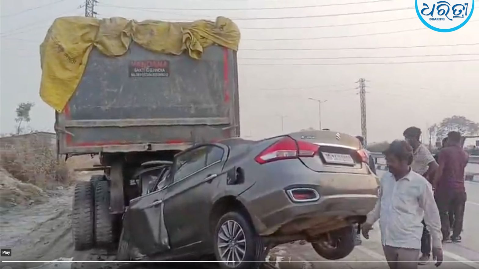 ଛିଡ଼ା ହୋଇଥିବା ପାଉଁଶ ବୋଝେଇ ହାଇୱାକୁ ଧକ୍କା ଦେଲା କାର୍, ୩ ମୃତ