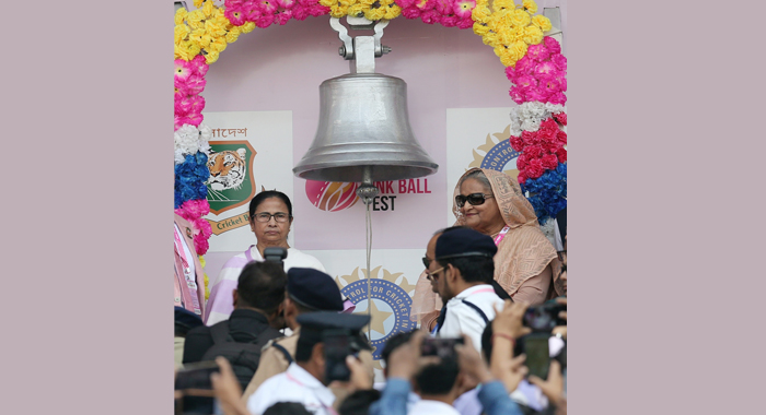 କୋଲକାତା,୨୨।୧୧- ଭାରତ ଓ ବାଂଲାଦେଶ ମଧ୍ୟରେ ବହୁ ପ୍ରତୀକ୍ଷିତ ପିଙ୍କ ବଲ ଦିବାରାତ୍ର ମ୍ୟାଚ୍ ଶୁକ୍ରବାରଠାରୁ ଆରମ୍ଭ ହୋଇଯାଇଛି। ମ୍ୟାଚ୍ ପୂର୍ବରୁ ବାଂଲାଦେଶ ପ୍ରଧାନମନ୍ତ୍ରୀ ଶେଖ ହାସିନା ଓ ପଶ୍ଚିମ ବଙ୍ଗ ମୁଖ୍ୟମନ୍ତ୍ରୀ ମମତା ବାନାର୍ଜୀ ଅପରାହ୍ନ ଠିକ୍ ୧୨.୫୮ରେ ଇଡେନ ଗାର୍ଡେନରେ ପାରମ୍ପରିକ ବେଲ୍ ବଜାଇଥିଲେ। ଏହି ଅବସରରେ ପୂର୍ବତନ ଭାରତୀୟ ଅଧିନାୟକ ତଥା ବିସିସିଆଇ ସଭାପତି ସୌରଭ ଗାଙ୍ଗୁଲି, ସାଧାରଣ ସମ୍ପାଦକ ଜୟ ଶାହ, ବାଂଲାଦେଶ କ୍ରିକେଟ ବୋର୍ଡ (ବିସିବି) ମୁଖ୍ୟ ନାଜମୁଲ ହାସନ ଓ ବ୍ୟାଟିଂ କିମ୍ବଦନ୍ତୀ ସଚିନ ତେନ୍ଦୁଲକରଙ୍କ ସମେତ ଅନ୍ୟମାନେ ଉପସ୍ଥିତ ଥିଲେ।