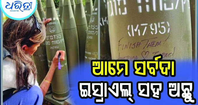 ଓ୍ବାଶିଂଟନ୍,୨୯।୫: ଦକ୍ଷିଣ କାରୋଲିନାର ପୂର୍ବତନ ଗଭର୍ନର ନିକ୍କି ହାଲି ଇସ୍ରାଏଲ ଗସ୍ତ ସମୟରେ ଇସ୍ରାଏଲ ପ୍ରତିରକ୍ଷା ବାହିନୀକୁ ରକେଟରେ କିଛି ଶବ୍ଦ ଲେଖି ଉତ୍ସାହିତ କରିଥିଲେ। ସେ ମେମୋରିୟଲ୍ ଡେ’ରେ ଇସ୍ରାଏଲରେ ପହଞ୍ଚିଥିଲେ। ଏଠାରେ ସେ ‘ଫିନିଶ୍ ଦେମ୍’ ଲେଖି ରକେଟରେ ଦସ୍ତଖତ କରିଥିଲେ।