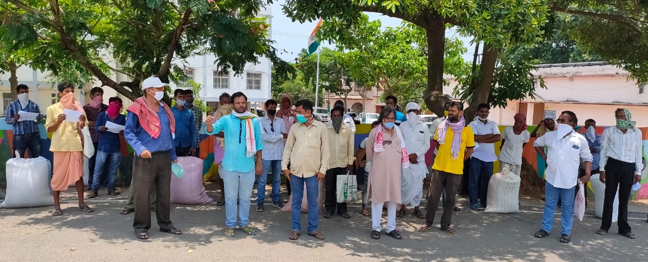 ଜ଼ିଲାପାଳଙ୍କ ଅଫିସ ଆଗରେ ଧାନ ରଖି ଆନ୍ଦୋଳନ କଲେ ଚାଷୀ