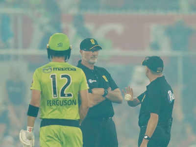 କାନବେରା,୨୧।୧୨- ମାନୁକା ଓଭାଲରେ ସିଡ୍ନୀ ଥଣ୍ଡର ଓ ଆଡିଲେଡ ଷ୍ଟ୍ରାଇକର୍ସ ମଧ୍ୟରେ ଶନିବାର ଖେଳାଯାଇଥିବା ବିଗ ବାଶ ଲିଗ୍ ମ୍ୟାଚ୍ ରଦ୍ଦ ହୋଇଯାଇଛି। ୧୬୨ ରନ୍ର ବିଜୟ ଲକ୍ଷ୍ୟ ପିଛା କରୁଥିବା ଥଣ୍ଡର ୪.୨ ଓଭରରେ ଏକ ଉଇକେଟ ହରାଇ ୪୦ ରନ୍ କରିଥିଲା। ମାତ୍ର ପ୍ରଦୂଷିତ ବାୟୁ ଯୋଗୁ ମ୍ୟାଚ୍କୁ ବାତିଲ କରି ଦିଆଯାଇଛି। ଷ୍ଟାଡିୟମ ନିକଟରେ ଏକ ବୁଦାରେ ନିଆଁ ଲାଗି ଯିବାରୁ ଅତ୍ୟଧିକ ଧୂଆଁ ବାହାରି ଥିଲା। ଏଥିଯୋଗୁ ଗ୍ରାଉଣ୍ଡରେ ଖେଳାଳିମାନେ ଠିକ୍ ସେ ଦେଖିପାରି ନ ଥିଲେ। ବାଧ୍ୟ ହୋଇ ଖେଳାଳି ଓ ଅଫିସିଆଲଙ୍କୁ ଗ୍ରାଉଣ୍ଡ ଛାଡ଼ିବାକୁ ପଡ଼ିଥିଲା। ଖେଳାଳି, ଫ୍ୟାନଙ୍କ ସୁରକ୍ଷା ଓ ଗ୍ରାଉଣ୍ଡ ସ୍ଥିତି ପରଖିବା ପରେ ମ୍ୟାଚ୍କୁ ବାତିଲ କରାଯାଇଥିଲା। ଡିଏଲଏସ ନିୟମ ଦ୍ୱାରା ଫଳାଫଳ ନିର୍ଣ୍ଣୟ ପାଇଁ ଥଣ୍ଡର ଦଳକୁ ଆଉ ୪ ବଲ ଅଧିକ ଖେଳିବାର ଥିଲା। ଉସମାନ ଖ୍ବାଜା ଶୂନ୍ୟରେ ଆଉଟ୍ ହେବା ପରେ ଆଲେକ୍ସ ହେଲ୍ସ ଓ କଲମ ଫର୍ଗୁସନ ପ୍ରତ୍ୟେକ ଓଭର ପିଛା ୯ରୁ ଅଧିକ ରନ୍ କରିଥିଲେ।