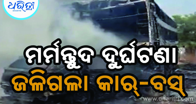 କାର୍‌-ବସ୍‌ ମୁହାଁମୁହିଁ ଧକ୍କା: ଜଳିଗଲେ ଗୋଟିଏ ପରିବାରର ୯ ସଦସ୍ୟ