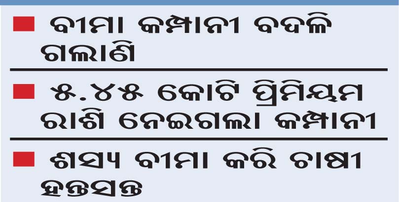 ଖୋର୍ଦ୍ଧା ଅଫିସ,୨୩ା୮:ପ୍ରାକୃତିକ ବିପର୍ଯ୍ୟୟ ଓ ଅନ୍ୟ କୌଣସି କାରଣରୁ ଫସଲ ନଷ୍ଟ ହେଲେ କ୍ଷତିପୂରଣ ପାଇବା ଲକ୍ଷ୍ୟ ନେଇ ପ୍ରଧାନମନ୍ତ୍ରୀ ଫସଲ ବୀମା ଯୋଜନା ଚାଷୀ କରିଥିଲେ। ହେଲେ ତିତ୍ଲି ବାତ୍ୟା ଯିବାର ୧୦ ମାସ ବିତି ଯାଇଥିଲେ ହେଁ କ୍ଷତିଗ୍ରସ୍ତ ଚାଷୀ ବୀମା କ୍ଷତିପୂରଣ ପାଇ ପାରୁନାହାନ୍ତି। ଇତି ମଧ୍ୟରେ ବୀମା କମ୍ପାନୀ ବି ବଦଳି ସାରିଲାଣି। ଏଭଳିସ୍ଥଳେ ଖୋର୍ଦ୍ଧା ଜିଲାରୁ ୫ କୋଟି ୪୪ ଲକ୍ଷ ୬୦ ହଜାର ଟଙ୍କା ପ୍ରମିୟମ ନେଇ ଇନ୍ସୁରାନ୍ସ କମ୍ପାନୀ ଲାଭରେ ରହିଲେ। ସେପଟେ କ୍ଷତିପୂରଣ ପାଇବା ପାଇଁ ଚାଷୀ ବିକ୍ଷୋଭ, ଆନ୍ଦୋଳନ କରିଥିଲେ ମଧ୍ୟ ବୀମା ସହାୟତା ରାଶି ପାଇ ପାରିଲେ ନାହିଁ। ଅନ୍ୟପକ୍ଷେ ତିତ୍ଲି ଯାଇ ବାତ୍ୟା ଫନୀ ଚାଷୀର ମେରୁଦଣ୍ଡ ଭାଙ୍ଗି ସାରିଲାଣି। ତଥାପି ବୀମା କମ୍ପାନୀର ଚାଷୀଙ୍କ କ୍ଷତିପୂରଣ ଦେବାକୁ ମନେପଡୁନାହିଁ।