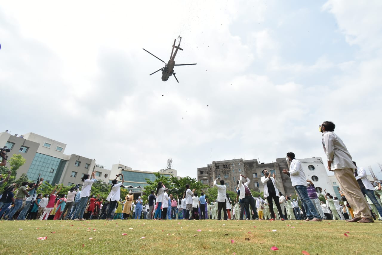 ଭାରତୀୟ ସେନା ପକ୍ଷରୁ କରୋନା ଯୋଦ୍ଧାଙ୍କୁ ସମ୍ମାନ: ଭୁବନେଶ୍ୱର କିମ୍ସ କୋଭିଡ୍‌ ହସ୍ପିଟାଲରେ ସ୍ବାସ୍ଥ୍ୟକର୍ମୀଙ୍କ ଉପରେ ପୁଷ୍ପ ବର୍ଷା