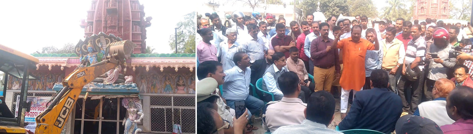ବାଲେଶ୍ୱର ଅଫିସ, ୨୯।୧-ବାଲେଶ୍ୱର ସହର ମୁଖ୍ୟରାସ୍ତା ଓଟିରୋଡ୍କୁ ସମ୍ପ୍ରସାରଣ ଲାଗି ଆଇଟିଆଇସ୍ଥିତ ଲକ୍ଷ୍ମୀନାରାୟଣ ମନ୍ଦିର ଭଙ୍ଗାଯିବା ପାଇଁ ଜିଲା ପ୍ରଶାସନ ପକ୍ଷରୁ ଦୀର୍ଘଦିନ ହେଲା ମନ୍ଦିର ପରିଚାଳନା କମିଟିକୁ ନୋଟିସ୍ ଦିଆଯାଇଥିଲା। ପୂର୍ବରୁ ଲୋକଙ୍କ ବିରୋଧ ଯୋଗୁ ପ୍ରଶାସନ ବିଫଳ ହୋଇ ଫେରୁଥିବା ବେଳେ ମଙ୍ଗଳବାର ଏହାର ଉଚ୍ଛେଦ ପାଇଁ ପ୍ରଶାସନ ଦୃଢ଼ କାର୍ଯ୍ୟାନୁଷ୍ଠାନ ଗ୍ରହଣ କରିବାକୁ ବାଧ୍ୟ ହୋଇଥିଲା। ଏହା ଜାଣିପାରି ସ୍ଥାନୀୟ ଲୋକ, ମନ୍ଦିର ପରିଚାଳନା କମିଟି ଓ ଅଟଳ ବିହାରୀ ସ୍ମୃତି କମିଟି ପକ୍ଷରୁ ମନ୍ଦିର ସମ୍ମୁଖରେ ନାମଯଜ୍ଞ, ସଙ୍କୀର୍ତ୍ତନ, ହୋମଯଜ୍ଞ କାର୍ଯ୍ୟକ୍ରମ ପୂର୍ବାହ୍ନ ୭ଟାରେ ଆରମ୍ଭ କରାଯାଇଥିଲା। ପ୍ରଶାସନ ପକ୍ଷରୁ ସଦର ତହସିଲଦାର ପଞ୍ଚାନନ ପାତ୍ର, ଉପଜିଲାପାଳ ନୀଲୁ ମହାପାତ୍ର, ଅତିରିକ୍ତ ଜିଲା ଆରକ୍ଷୀ ଅଧୀକ୍ଷକ ତପନ କୁମାର ପଟ୍ଟନାୟକ, ଏସ୍ଡ଼ିପିଓ ପ୍ରଭାସ ଚନ୍ଦ୍ର ପାଲ, ଡିଏସ୍ପି ମନୋଜ ରାଉତ, ଆଇଆଇସି ପରେଶ ରାଉତଙ୍କ ସମେତ ୩ ପ୍ଲାଟୁନ ଫୋର୍ସ ଏବଂ ଜେସିବି ସହିତ ଘଟଣାସ୍ଥଳରେ ପହଞ୍ଚିଥିଲେ। ପରେ ଲୋକମାନେ ମନ୍ଦିର ଭଙ୍ଗାଯିବା ପ୍ରକ୍ରିୟାକୁ ବିରୋଧ କରି ଧାରଣାରେ ବସିଥିଲେ। ପ୍ରଶାସନ ପକ୍ଷରୁ ଧାରଣାକାରୀଙ୍କ ସହ ଆଲୋଚନା କରାଯିବା ସୂତ୍ରରେ ମଧ୍ୟାହ୍ନ ୧୨ଟାରେ ଉଭୟପକ୍ଷଙ୍କ ମଧ୍ୟରେ ଆଲୋଚନା ହୋଇଥିଲା। ରାସ୍ତାର ପ୍ରଶସ୍ତିକରଣ ସହିତ ମନ୍ଦିର ସୁରକ୍ଷିତ ରଖିବା ସୂତ୍ରରେ କେବଳ ମନ୍ଦିର ତୋରଣ ଓ ଗରୁଡ଼ଖମ୍ଭକୁ ଭଙ୍ଗାଯିବାର ନିଷ୍ପତ୍ତି ହୋଇଥିଲା। ମନ୍ଦିର ପରିଚାଳନା କମିଟି ସଭାପତି ହିମାଂଶୁ ଦାସ, ଅଟଳ ବିହାରୀ ସ୍ମୃତି କମିଟିର କାର୍ଯ୍ୟକାରୀ ସଭାପତି ପର୍ଶୁରାମ ବେହେରା, ରେମୁଣାର ପୂର୍ବତନ ବିଧାୟକ ଗୋବିନ୍ଦ ଚନ୍ଦ୍ର ଦାଶ, ଯୁବନେତା ଗୌରାଙ୍ଗ ଦାସ, ସମାଜସେବୀ ସୀତାକାନ୍ତ ସ୍ବାଇଁ, ସୁଜିତ ଦେବ ପ୍ରମୁଖ ଆଲୋଚନାରେ ସାମିଲ୍ ଥିଲେ।