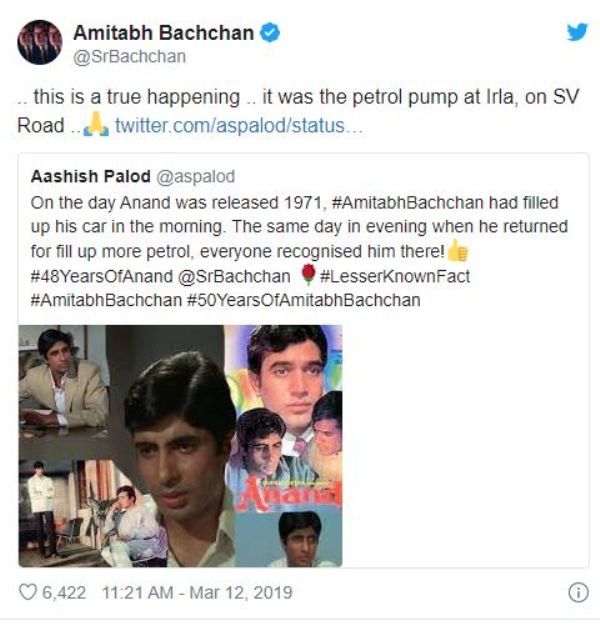 ମୁମ୍ବାଇ: ବଲିଉଡ୍ରେ ପ୍ରଥମେ ବିଗ୍ ବି ଅମିତାଭ ବଚ୍ଚନଙ୍କୁ ବହୁ ସଂଘର୍ଷ କରିବାକୁ ପଡ଼ିଛି। ଏହାପରେ ତାଙ୍କୁ ମିଳିଥିଲା ଷ୍ଟାର ମାନ୍ୟତା। ତାଙ୍କ ଅଭିନୀତ ଫିଲ୍ମ ଆନନ୍ଦକୁ ଗୁରୁବାର ୪୮ ବର୍ଷ ପୂରିଛି। ଏହି ଫିଲ୍ମଟି ୧୯୭୧ ମାର୍ଚ୍ଚ ୧୨ରେ ରିଲିଜ୍ ହୋଇଥିଲା। ରିଲିଜ୍ ହେବା ଦିନ ସକାଳ ପର୍ଯ୍ୟନ୍ତ ଅମିତାଭଙ୍କୁ ନେଇ ବଲିଉଡ୍ରେ କୌଣସି ଚର୍ଚ୍ଚା ନ ଥିଲା। ତେବେ ସନ୍ଧ୍ୟାବେଳକୁ ସେ ପାଲଟି ଯାଇଥିଲେ ଷ୍ଟାର। ମାତ୍ର ୧୨ ଘଣ୍ଟା ମଧ୍ୟରେ ସେ ଷ୍ଟାର ପାଲଟି ଯାଇଥିଲେ। ତାଙ୍କ ଅଭିନୟ ଦର୍ଶକଙ୍କୁ ବେଶ୍ ବାନ୍ଧି ରଖିବାକୁ ସକ୍ଷମ ହୋଇଥିଲା। ହୃଷିକେଶ ମୁଖାର୍ଜୀଙ୍କ ନିର୍ଦ୍ଦେଶନାରେ ନିର୍ମିତ ହୋଇଥିବା ଏହି ଫିଲ୍ମକୁ ନେଇ ବିଗ୍ ବି ନିଜର ଅଭିଜ୍ଞତା ସମ୍ପର୍କରେ ଟୁଇଟରରେ ଶେୟାର କରିଛନ୍ତି। ଆନନ୍ଦ କିଭଳି ତାଙ୍କ କ୍ୟାରିଆରରେ ଗୁରୁତ୍ୱପୂର୍ଣ୍ଣ ପରିବର୍ତ୍ତନ ଆଣିଥିଲା ସେ ନେଇ ବିଗ୍ ବି ସୂଚନା ଦେଇଛନ୍ତି।