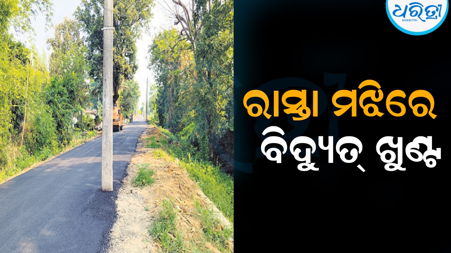 ରାସ୍ତା ମଝିରେ ବିପଦସଙ୍କୁଳ ବିଦ୍ୟୁତ୍‌ ଖୁଣ୍ଟ: ଯାତାୟତରେ ବାଧା