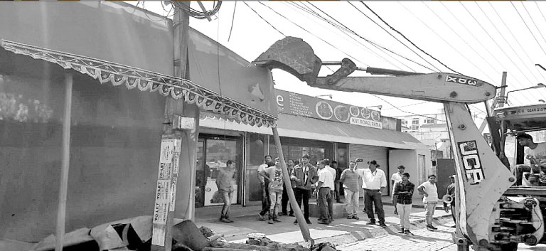 ଭୁବନେଶ୍ୱର, ୧୧ା୨ (ବ୍ୟୁରୋ): ବିଗତ କିଛି ମାସ ହେବ ଭୁବନେଶ୍ୱରରେ ଜବରଦଖଲ ଉଚ୍ଛେଦ ଜୋର୍‌ଦାର ଚାଲିଛି। ସହରକୁ ସମ୍ପୂର୍ଣ୍ଣ ଜବରଦଖଲ ମୁକ୍ତ ଲକ୍ଷ୍ୟ ରଖି ଭୁବନେଶ୍ୱର ମହାନଗର ନିଗମ (ବିଏମ୍‌ସି), ଭୁବନେଶ୍ୱର ଉନ୍ନୟନ କର୍ତ୍ତୃପକ୍ଷ (ବିଡିଏ) ଓ କମିଶନରେଟ ପୋଲିସର ମିଳିତ ଟିମ୍‌ ପକ୍ଷରୁ ସୋମବାର ଇନ୍‌ଫୋସିଟି ଥାନା ଅନ୍ତର୍ଗତ କିଟ୍‌ ରାସ୍ତାର ଦୁଇ ପାର୍ଶ୍ୱରୁ ଜବରଦଖଲ ହଟିଛି। ମିଳିତ ଟିମ୍‌ ପକ୍ଷରୁ ୨୮ଟିଣ ଓ ଛାତ ଦୋକାନ ସହ ୧୨ ଖାଇବା ଦୋକାନ, ୧୦ ପାଚେରୀକୁ ଭାଙ୍ଗି ଦିଆଯାଇଥିବାବେଳେ ୫ ସିମେଣ୍ଟ ଖୁଣ୍ଟି, ୪ ର଼୍ୟାମ୍ପ, ୧୪ ହୋର୍ଡିଂ ଓ ସାଇନ ବୋର୍ଡକୁ ହଟାଇ ଦିଆଯାଇଛି। ଉଲ୍ଲେଖଯୋଗ୍ୟ, ଦିନକୁଦିନ ଉକ୍ତ ରାସ୍ତାକୁ ଉଠା ଦେକାନୀ ଓ ଅସ୍ଥାୟୀ ଦେକାନୀମାନେ କବ୍‌ଜା କରି ବ୍ୟବସାୟ କରୁଛନ୍ତି। ଫଳରେ ଗାଡି ଚଳାଚଳରେ ଗୁରୁତର ସମସ୍ୟା ସୃଷ୍ଟି ହେଉଛି। ଏନେଇ ଅଭିଯୋଗ ଆସିବା ପରେ ଏପରି ପଦକ୍ଷେପ ଗ୍ରହଣ କରାଯାଇଛି। ଏହି ଉଚ୍ଛେଦରେ ଏନ୍‌ଫୋର୍ସମେଣ୍ଟ ଅଧିକାରୀ ପ୍ରମୋଦ କୁମାର ପାତ୍ର, ଯୋଗସୂତ୍ର ଅଧିକାରୀ ଶୁଭ୍ରାଶୁଂ ଶେଖର ମହାନ୍ତି, ଏସିପି ପ୍ରକାଶ ଚନ୍ଦ୍ର ପାଲ, ଇନ୍‌ଫୋସିଟି ଥାନା ଅଧିକାରୀ ବିଶ୍ୱଜିତ୍‌ ମହାନ୍ତିଙ୍କ ସମେତ ବିଏମ୍‌ସିର ୧, ୩, ୪ ନମ୍ବର ଏନ୍‌ଫୋର୍ସମେଣ୍ଟ ସ୍କ୍ବାଡ୍‌ ଓ ଅନ୍ୟ ଅଧିକାରୀମାନେ ଉପସ୍ଥିତ ଥିଲେ।