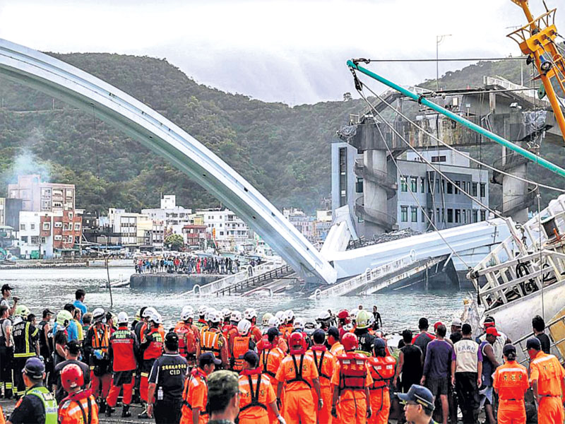 ତାଇପେଇ, ୩ା୧୦: ତାଇଓ୍ବାନ୍ରେ ବୁଧବାର ଏକ ବ୍ରିଜ୍ ଭୁଶୁଡ଼ି ପଡ଼ିବାରୁ ୬ ଜଣଙ୍କ ମୃତ୍ୟୁ ଘଟିଛି। ୩ଟି ବୋଟ ଏହାଦ୍ୱାରା କ୍ଷତିଗ୍ରସ୍ତ ହୋଇଥିବାବେଳେ ପ୍ରାଣ ହରାଇଥିବା ବ୍ୟକ୍ତିମାନେ ଇଣ୍ଡୋନେସିଆ ଓ ଫିଲିପାଇନ୍ସର ମତ୍ସ୍ୟଜୀବୀ ବୋଲି ଜଣାପଡ଼ିଛି। ପ୍ରାୟ ୧୪ଜଣ ଆହତ ହୋଇଥିବା ଖବର ମିଳିଛି। ବ୍ରିଜ୍ ଭୁଶୁଡ଼ିବା ପରେ ଯୁଦ୍ଧକାଳୀନ ଭିତ୍ତିରେ ଉଦ୍ଧାର କାର୍ଯ୍ୟ ଜାରି ରହିଛି ବୋଲି ପରିବହନ ମନ୍ତ୍ରୀ ଲିନ୍ ଚିଆ-ଲୁଙ୍ଗ୍ ପ୍ରକାଶ କରିଛନ୍ତି। ଫିଲିପାଇନ୍ସ ଶ୍ରମମନ୍ତ୍ରୀ କହିଛନ୍ତି ଯେ, ଦେଶର ୨ ନାଗରିକ ଏଥିରେ ପ୍ରାଣ ହରାଇଥିବାବେଳେ ଜଣେ ନିଖୋଜ ଅଛନ୍ତି। ୧୪୦ ମିଟର(୪୬୦ ଫୁଟ)ର ଏହି ବ୍ରିଜ୍ ଭୁଶୁଡ଼ିବାର ଦୃଶ୍ୟ ସିସିଟିଭି ଫୁଟେଜ୍ରେ କଏଦ୍ ହୋଇଛି।