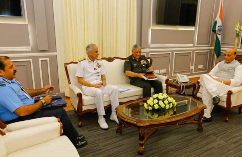 ନୂଆଦିଲ୍ଲୀ,୨୮।୧୦: ଅକ୍ଟୋବର ୩୧ରୁ ଜମ୍ମୁ-କଶ୍ମୀର କେନ୍ଦ୍ରଶାସିତ ଅଞ୍ଚଳ ହେବ। ଏନେଇ ପ୍ରତିରକ୍ଷା ମନ୍ତ୍ରୀ ରାଜନାଥ ସିଂଙ୍କୁ ସୋମବାର ସେନା ମୁଖ୍ୟ ଜେନେରାଲ ବିପିନ୍ ରାଓ୍ବତ୍, ନୌସେନା ମୁଖ୍ୟ ଆଡ଼ମିରଲ କରମବୀର ସିଂ ଏବଂ ବାୟୁସେନା ମୁଖ୍ୟ ଆର୍.କେ.ଏସ୍. ଭଦୌରିୟା ସାକ୍ଷାତ୍ କରିଛନ୍ତି। ସାକ୍ଷାତ୍ ସମୟରେ ଜମ୍ମୁ-କଶ୍ମୀର ସହିତ ଦେଶର ସୁରକ୍ଷା ସ୍ଥିତି ସମ୍ପର୍କରେ ଆଲୋଚନା ହୋଇଥିବା କୁହାଯାଉଛି।