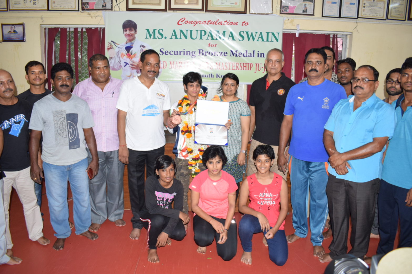 ଅନୁପମାଙ୍କୁ ଉତ୍କଳ କରାଟେ ସ୍କୁଲ ପରିସରରେ ବୁଧବାର ଓଡ଼ିଶା ଜୁଜୁଟ୍ସୁ ସଂଘ ପକ୍ଷରୁ ସମ୍ବର୍ଦ୍ଧନା ଦିଆ ଯାଇଛି। ବିଧାୟକ ଅନନ୍ତ ନାରାୟଣ ଜେନା, ଓଡ଼ିଶା ଜୁଜୁଟ୍ସୁ ସଂଘ ସଭାପତି ଗୌରୀ ମହାନ୍ତି, ଉପସଭାପତି ଚିତ୍ତରଞ୍ଜନ ସ୍ବାଇଁ, କୋଚ୍ ହରିପ୍ରସାଦ, ହିମାଂଶୁ ଶେଖର ଦାସ, ମୀର ଅଜମତ ଅଲୀ, ଅବିନାଶ ପୁନ୍ଦିର, ଯିଶୁକର, ଜାନକି ବଲ୍ଲଭ ମିଶ୍ର, ଦେବାଶିଷ ଆଚାର୍ଯ୍ୟ, ଅନ୍ତର୍ଜାତୀୟ କରାଟେକା ଦିଲୀପ କୁମାର ଜେନା, ସୁସ୍ମିନି ପାଲଟାସିଂ, ସିନ୍ଧୁତନୟା ଖୁଣ୍ଟିଆ, ମଧୁପ୍ରିୟା, ଅନ୍ତର୍ଜାତୀୟ ଭାରୋତ୍ତୋଳନକାରୀ ଶୁଭସ୍ମିତା ମହାନ୍ତି ପ୍ରମୁଖ ଏହି ସମ୍ବଦ୍ଧନା ଉତ୍ସବରେ ଉପସ୍ଥିତ ଥିଲେ। ଓଡ଼ିଶା ପୋଲିସରେ କାର୍ଯ୍ୟରତ ଅନୁପମା ଜୁଜୁଟ୍ସୁ ବ୍ୟତୀତ ଏସୀୟ ଶକ୍ତିଉତ୍ତୋଳନ ପ୍ରତିଯୋଗିତାରେ ସ୍ବର୍ଣ୍ଣ ଏବଂ କରାଟେରେ ରାଜ୍ୟଗୋଷ୍ଠୀ ପଦକ ମଧ୍ୟ ହାସଲ କରିଛନ୍ତି।