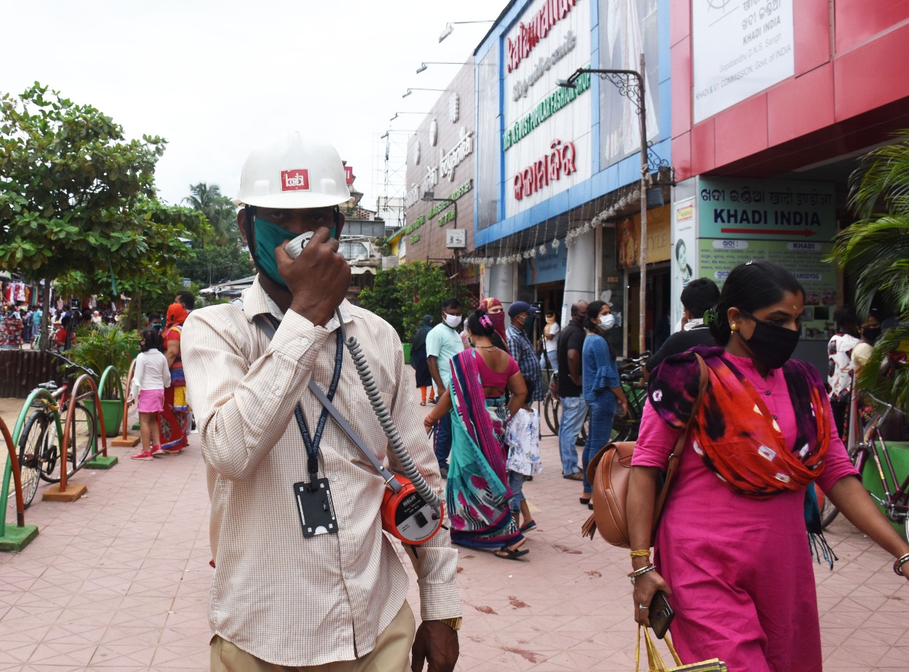 ମାର୍କେଟ ବିଲଡିଂରେ ଲୋକଙ୍କ ଗହଳିକୁ ଦେଖି ବିଡିଏ ପକ୍ଷରୁ ଡାକବାଜି ଯନ୍ତ୍ର ସାହାଯ୍ୟରେ ସଚେତନତା କରାଯାଉଛି।