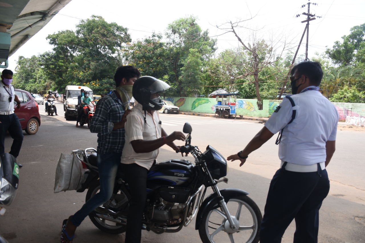 ରାଜମହଲ ଛକରେ ରଙ୍ଗ୍ ସାଇଡ୍ରୁ ଆସୁଥିବା ବାଇକ୍ଠାରୁ ଟ୍ରାଫିକ ପୋଲିସ ଜରିମାନା ଆଦାୟ କରୁଛି।