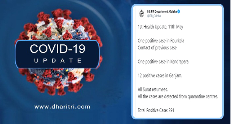 ସୂଚନାଯୋଗ୍ୟ, ବର୍ତ୍ତମାନ ସୁଦ୍ଧା ରାଜ୍ୟରେ ମୋଟ୍ ୩୯୧ କରୋନା ଆକ୍ରାନ୍ତଙ୍କ ମଧ୍ୟରୁ ୩୨୦ ଜଣ ବିଭିନ୍ନ କୋଭିଡ୍ ହସ୍ପିଟାଲରେ ଚିକିତ୍ସିତ ହେଉଛନ୍ତି। ସେହିପରି ୬୮ ଜଣ ସୁସ୍ଥ ହୋଇଥିବା ବେଳେ ୩ ଜଣଙ୍କ ମୃତ୍ୟୁ ଘଟିଛି।