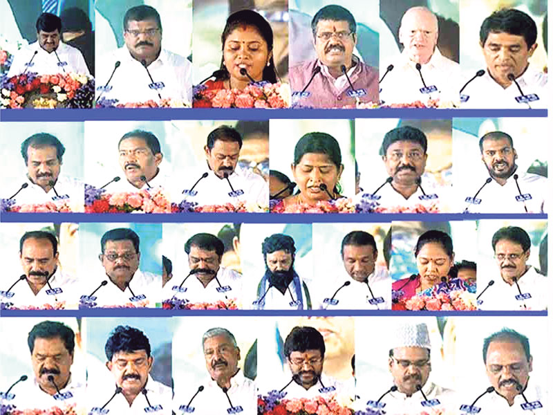 ଅମରାବତୀ, ୯ା୬(ପି.ଟି.): ଆନ୍ଧ୍ରପ୍ରଦେଶ ମୁଖ୍ୟମନ୍ତ୍ରୀ ଜଗନ୍ମୋହନ ରେଡ୍ଡୀଙ୍କ ମନ୍ତ୍ରିମଣ୍ଡଳରେ ଶନିବାର ୫ ଉପମୁଖ୍ୟମନ୍ତ୍ରୀଙ୍କ ସହ ୨୫ ମନ୍ତ୍ରୀ ସାମିଲ ହୋଇଛନ୍ତି। ୫ ଉପମୁଖ୍ୟମନ୍ତ୍ରୀ ହେଲେ ପାମୁଲା ପୁଷ୍ପା ଶ୍ରୀବାଣୀ, ପିଲ୍ଲି ସୁବାସ ଚନ୍ଦ୍ର ବୋଷ, ଆଲ୍ଲା କଲି କ୍ରିଷ୍ଣା ଶ୍ରୀନିବାସ, ଏଲ୍ ନାରାୟଣ ସ୍ବାମୀ ଓ ଆମ୍ଜାଥ ବାସା । ଏଥିସହ ୭ ଜଣ ପଛୁଆବର୍ଗର ବିଧାୟକଙ୍କୁ କ୍ୟାବିନେଟ ମନ୍ତ୍ରୀ ପାହ୍ୟା ପ୍ରଦାନ କରିଥିବାବେଳେ ଅନୁସୂଚିତ ଜାତି ବର୍ଗର ୫ ବିଧାୟକ, ମୁସଲ୍ମାନ୍ ଓ ଅନୁସୂଚିତ ଉପଜାତି ବର୍ଗର ଜଣେ ଲେଖାଏ, କପୁ ଓ ରେଡ୍ଡୀ ସମ୍ପ୍ରଦାୟର ୪ଜଣ ଲେଖାଏ ବିଧାୟକଙ୍କୁ କ୍ୟାବିନେଟ ମନ୍ତ୍ରୀ ପଦ ପ୍ରଦାନ କରାଯାଇଛି। କ୍ଷତ୍ରିୟ ଓ ବୈଶ୍ୟ ସମ୍ପ୍ରଦାୟର ଜଣେ ଲେଖାଏ ବିଧାୟକ ମଧ୍ୟ ଏହି କ୍ୟାବିନେଟରେ ସାମିଲ ହୋଇଛନ୍ତି। ରାଜ୍ୟପାଳ ଇ.ଏସ୍.ଏଲ୍. ନରସିଂହ ଏକ ବର୍ଣ୍ଣାଢ୍ୟ ସମାବେଶରେ ମନ୍ତ୍ରୀମାନଙ୍କୁ ପଦ ଓ ଗୋପନୀୟତାର ଶପଥ ପାଠ କରାଇଛନ୍ତି। ମୁଖ୍ୟମନ୍ତ୍ରୀ ଜଗନ୍ମୋହନ ରେଡ୍ଡୀଙ୍କୁ ମିଶାଇ ୨୬ଜଣିଆ କ୍ୟାବିନେଟରେ ୩ ମହିଳା ସଦସ୍ୟ ସ୍ଥାନ ପାଇଛନ୍ତି। ଏମାନଙ୍କ ମଧ୍ୟରୁ ଅନୁସୂଚିତ ଜାତି ବର୍ଗର ୨ ଜଣ ହୋଇଥିବାବେଳେ ଅନୁସୂଚିତ ଉପଜାତି ବର୍ଗରୁ ଜଣେ ଅଛନ୍ତି।ଦଳିତ ବର୍ଗର ମହିଳା ବିଧାୟକ ମେକାଥୋତି ସୁଚରିତାଙ୍କୁ ସ୍ବରାଷ୍ଟ୍ର ମନ୍ତ୍ରଣାଳୟ ମିଳିଥିବା ଜଣାପଡ଼ିଛି।