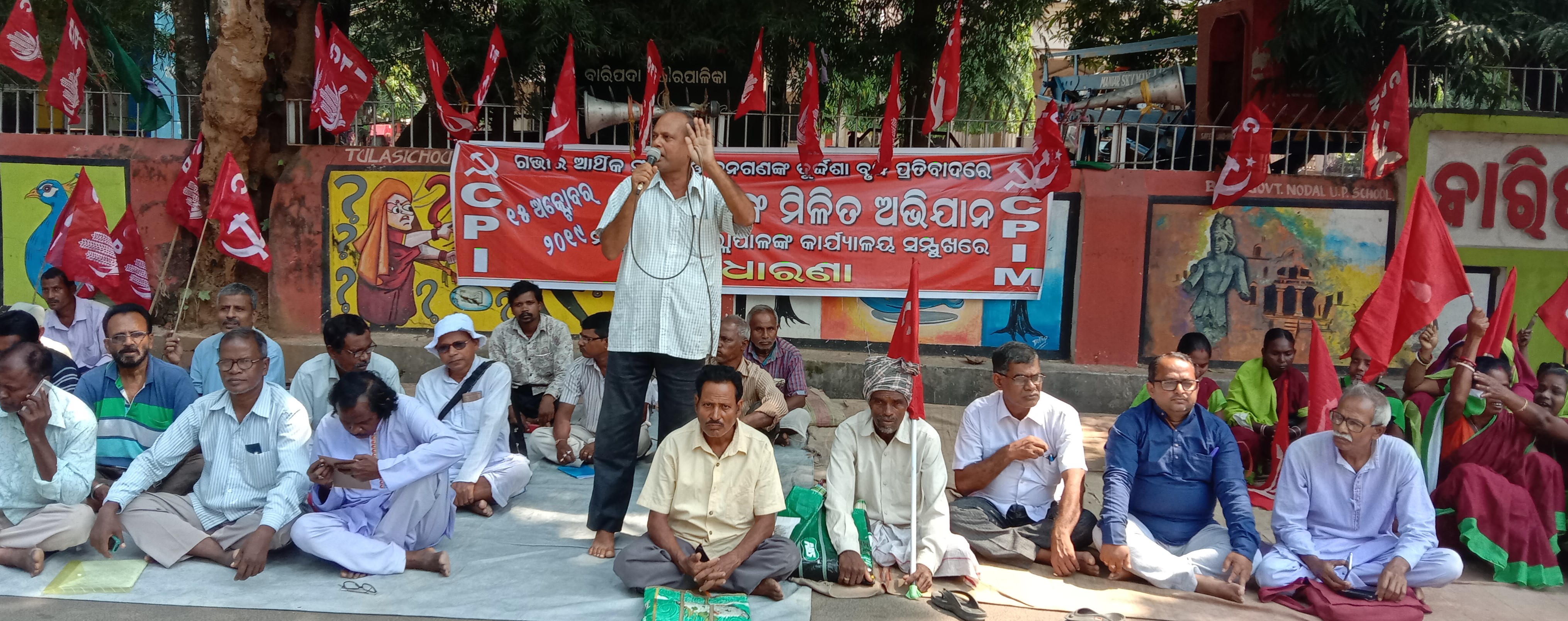 ବାରିପଦା ଅଫିସ,୧୬ା୧୦- ବାମପନ୍ଥୀ ଦଳ ସିପିଆଇ ଓ ସିପିଆଇ(ଏମ) ପକ୍ଷରୁ କେନ୍ଦ୍ର ନେତୃତ୍ୱାଧୀନ ଭାଜପା ସରକାରଙ୍କ ଭୁଲ ଓ ବିପଜ୍ଜନକ ନୀତି ଯୋଗୁ ଦେଶରେ ଚରମ ଅର୍ଥନୈତିକ ସଙ୍କଟ, ମାନ୍ଦାବସ୍ଥା ତଥା ଦରଦାମ ଓ ବେକାରି ସମସ୍ୟା ବୃଦ୍ଧି ପାଇଥିବା ଅଭିଯୋଗ କରାଯାଇଛି। ଏହାକୁ ବିରୋଧ କରି ଜିଲାପାଳଙ୍କ କାର୍ଯ୍ୟାଳୟ ସମ୍ମୁଖରେ ଏକ ଧାରଣା ସଭା ଅନୁଷ୍ଠିତ ହୋଇଯାଇଛି। ସିପିଆଇର ତ୍ରିନାଥ ପାତ୍ର ଓ ସିପିଆଇ(ଏମ)ର ନନୀଗୋପାଳ ବ୍ରହ୍ମାଙ୍କ ନେତୃତ୍ୱରେ ଅନୁଷ୍ଠିତ ସଭାରେ ସିପିଆଇ ରାଜ୍ୟ ସହ-ସମ୍ପାଦକ ଡ.ପ୍ରଶାନ୍ତ ମିଶ୍ର, ସିପିଆଇ ଜିଲା ସମ୍ପାଦକ ଜଗବନ୍ଧୁ ମିଶ୍ର, ସିପିଆଇ(ଏମ)ର ଜିଲା ସମ୍ପାଦକ ରବି ଗୋସ୍ବାମୀ, ପୂର୍ବତନ ସମ୍ପାଦକ ହୀରାମୋହନ ଦାଶ, ହୃଷୀକେଶ ସାହୁ, ବଳରାମ ମହାନ୍ତ, ସିଆଇଟିୟୁର ସମ୍ପାଦକ ଅମଲ ଦେ, କ୍ଷେତ ମୂଲିଆର ସଭାପତି ହରିଶ ଚନ୍ଦ୍ର ସିଂ, କୃଷକ ସଭା ସମ୍ପାଦକ ମାଧବ ସିଂ, କ୍ଷିତିଶ ସାମଲ ପ୍ରମୁଖ ବକ୍ତବ୍ୟ ରଖି କେନ୍ଦ୍ର ସରକାରଙ୍କ ଜନମାରଣ ନୀତିକୁ ବିରୋଧ କରିଥିଲେ। ଅନ୍ୟମାନଙ୍କ ମଧ୍ୟରେ ଚୈତନ୍ୟ ପୂର୍ତ୍ତିି, ରଥ ସିଂ, ଶ୍ୟାମଲେନ୍ଦୁ ସିଂ, କରୁଣାକର ମୁର୍ମୁ, ଗୋପବନ୍ଧୁ ସିଂ, ଫାତୁ ମୁର୍ମୁ, ନଳିନୀ କୁମାର ଦାସ, ଚିତ୍ତରଞ୍ଜନ ବାରିକ, ଶ୍ରୀକାନ୍ତ ସାମଲଙ୍କ ସମେତ ଅନ୍ୟମାନେ ଉପସ୍ଥିତ ଥିଲେ।
