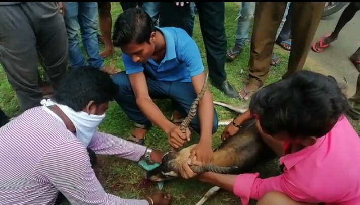 ଜଗନ୍ନାଥପ୍ରସାଦ,୧୧ା୬(ଡି.ଏନ୍.ଏ.)- ଜଗନ୍ନାଥପ୍ରସାଦ ଭାବସର ଗ୍ରାମ ମୁଖ୍ୟରାସ୍ତା ଉପରେ ଗୁରବାର ସକାଳ ପ୍ରାୟ ୯ଟାରେ କୌଣସି ଏକ ଗାଡି ଧକ୍କାରେ ଆହତ ହୋଇ ଏକ କୃଷ୍ଣସାର ମୃଗ ପଡିଥିଲା। ଗ୍ରାମର କେତେଜଣ ଯୁବକ ଆହତ ମୃଗଟିକୁ ଉଦ୍ଧାର କରିଥିଲେ। ପରେ ପ୍ରାଣୀଧନ ବିଭାଗ କର୍ମଚାରୀଙ୍କୁ ଡକାଇ ଚିକିତ୍ସା କରିବା ସହ ଟଙ୍କା ସଂଗ୍ରହ କରି ଔଷଧ କିଣଥିଲେ। ମୃଗଟି ସୁସ୍ଥ ହେବା ପରେ ବନବିଭାଗକୁ ଖବର ଦେଇଥିଲେ। ବନକର୍ମଚାରୀ ପହଞ୍ଚତ୍ ମୃଗଟିକୁ ନେଇଥିଲେ।