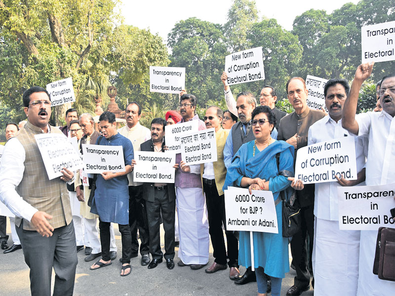 ଇଲେକ୍ଟୋରାଲ ବଣ୍ଡ୍ ପ୍ରଚଳନକୁ ଭାରତର ରିଜର୍ଭ ବ୍ୟାଙ୍କ (ଆର୍ବିଆଇ) ଏବଂ ନିର୍ବାଚନ କମିଶନ (ଇସି)ର ବିରୋଧ ସତ୍ତ୍ୱେ କେନ୍ଦ୍ରର ନରେନ୍ଦ୍ର ମୋଦି ସରକାର ଏହାକୁ ଅଗ୍ରାହ୍ୟ କରିଦେଇଥିଲେ। ଏହି ଖବର ପ୍ରକାଶ ପାଇବା ପରେ ଇଲେକ୍ଟୋରାଲ ବଣ୍ଡ୍କୁ ନେଇ ରାଜନୀତି ଜୋର ଧରିଛି। ଅବଧି ଶେଷ ହୋଇଥିବା ବଣ୍ଡ୍ ବେଆଇନ ଓ୍ବିଣ୍ଡୋରେ ବିକ୍ରି ହେଉଥିବାବେଳେ ତାହାକୁ ଗ୍ରହଣ କରିବା ଲାଗି ସରକାର ଏସ୍ବିଆଇ ଉପରେ ଚାପ ପକାଇଥିବା ଖବର ଗଣମାଧ୍ୟମରେ ପ୍ରକାଶ ପାଇଥିବା ଦର୍ଶାଇ କଂଗ୍ରେସ ଦଳର ମୁଖ୍ୟ ମୁଖପାତ୍ର ରଣଦୀପ୍ ସୁର୍ଜଓ୍ବୋଲା ସରକାରଙ୍କୁ ମିଛର ଫ୍ୟାକ୍ଟ୍ରି ବୋଲି ଟୁଇଟ୍ କରିଛନ୍ତି। ୧୯୯୩ ମୁମ୍ବାଇ ବୋମା ବିସ୍ଫୋରଣର ଅଭିଯୁକ୍ତ ଇକ୍ବାଲ ମିର୍ଚିଙ୍କଠାରୁ ସମ୍ପତ୍ତି କିଣିଥିବା କମ୍ପାନୀ ବିରୋଧରେ ପ୍ରବର୍ତ୍ତନ ନିର୍ଦ୍ଦେଶାଳୟ (ଇଡି) ତଦନ୍ତ ଚଳାଇଛି। ଉକ୍ତ କମ୍ପାନୀଠାରୁ ଭାଜପା ଚାନ୍ଦା ସଂଗ୍ରହ କରିଥିବା କଂଗ୍ରେସ ଅଭିଯୋଗ କରିଛି। ଏହି ପ୍ରସଙ୍ଗରେ ସିପିଆଇ ମଧ୍ୟ ସରକାରଙ୍କୁ କଡ଼ା ସମାଲୋଚନା କରିଛି।
