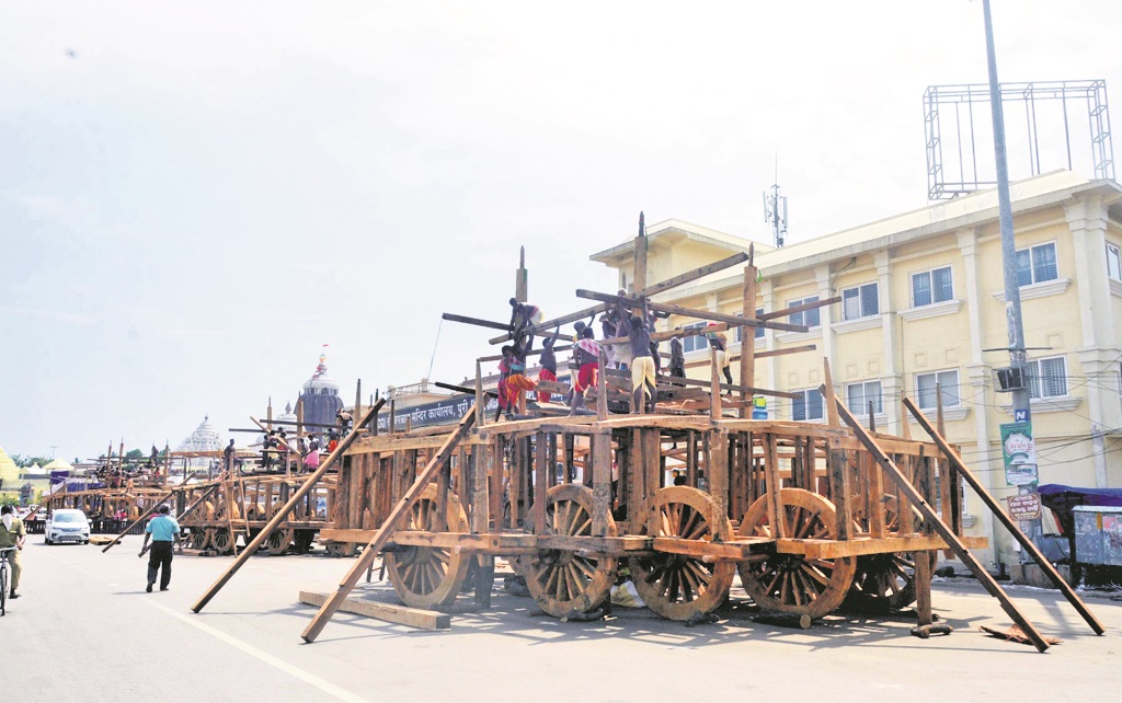ପୁରୀ ଅଫିସ, ୬ା୬: ଶ୍ରୀନଅର ସମ୍ମୁଖ ରଥଖଳାରେ ଚାଲିଛି ତିନିରଥ ନିର୍ମାଣ। ସ୍ନାନଯାତ୍ରା ଦୁଇଦିନ ପୂର୍ବରୁ ଚାରିନାହାକା ଉଠିଥିବାବେଳେ ଶୁକ୍ରବାର ତିନିରଥରେ ପ୍ରଥମ ଭୂଇଁ ଉଠିଛି। ଦ୍ୱିତୀୟ ଭୂଇଁ କାମ ମଧ୍ୟ ଶେଷ ହୋଇଛି। ଦୋଳବେଦି ପରିସର ଅସ୍ଥାୟୀ ଶାଳରେ ଓଝା ସେବକମାନେ ତାଗ କଣ୍ଟା ଓ ଢମକ କଣ୍ଟା ତିଆରି କରୁଛନ୍ତି। ସକାଳେ ରଥଖଳାରେ କାମ ଆରମ୍ଭ ପୂର୍ବରୁ ସମ୍ପୃକ୍ତ ସେବକମାନଙ୍କ ଥର୍ମାଲ ସ୍କ୍ରିନିଂ କରାଯାଇଥିଲା। ସମସ୍ତେ ସୁସ୍ଥ ଥିବା ଜଣାପଡ଼ିଛି।