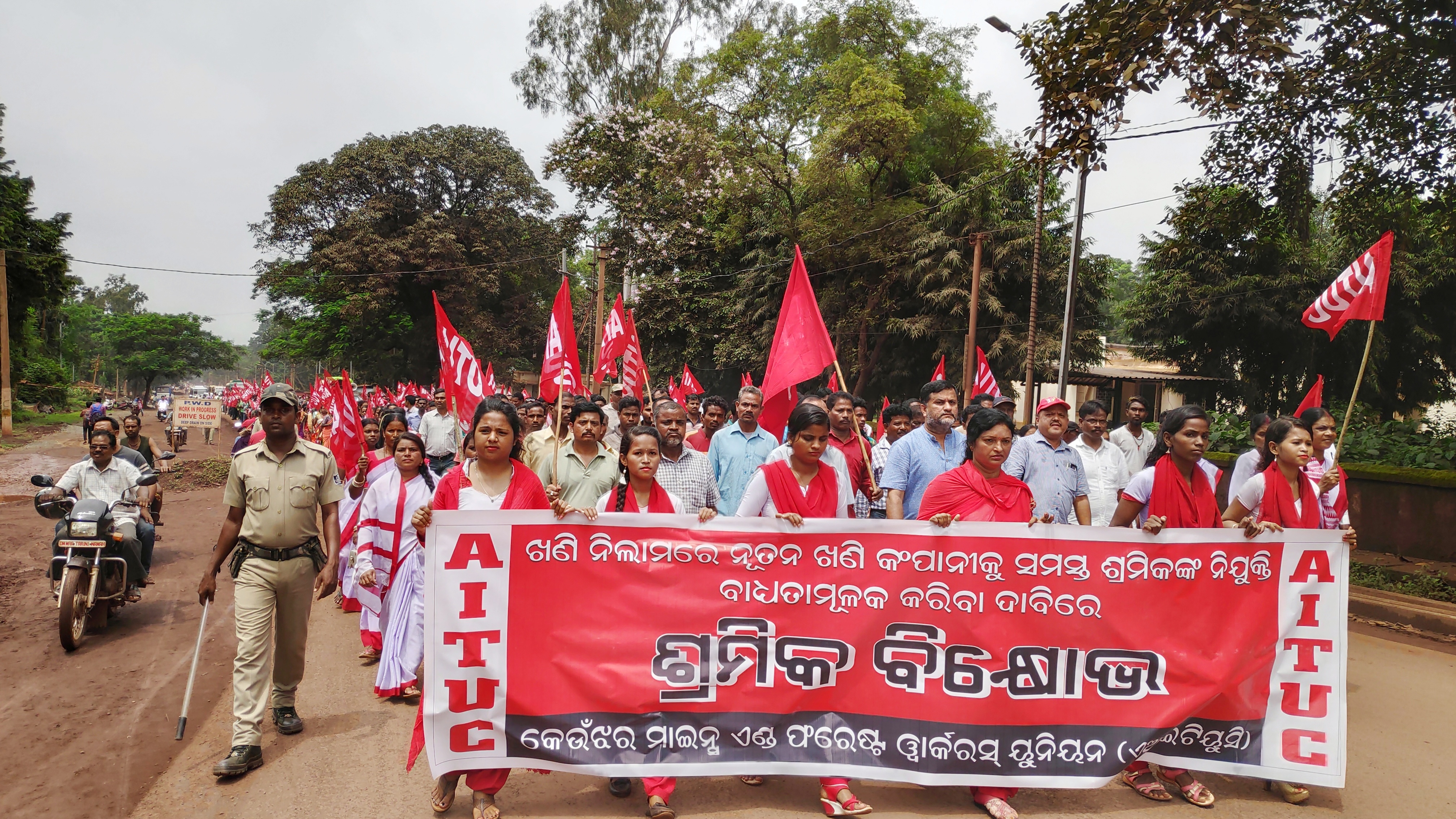 ବଡ଼ବିଲ,୨୮।୮(ସ୍ବ.ପ୍ର.): କେନ୍ଦୁଝର ଜିଲା ବଡ଼ବିଲରେ ଏଆଇଟିୟୁସି(ଅଖିଳ ଭାରତ ଟ୍ରେଡ୍ ୟୁନିୟନ କଂଗ୍ରେସ) ପକ୍ଷରୁ ବୁଧବାର ତହସିଲ କାର୍ଯ୍ୟାଳୟ ସମ୍ମୁଖରେ ବିକ୍ଷୋଭ ପ୍ରଦର୍ଶନ କରାଯାଇଛିି। ଶ୍ରମିକମାନେ ଏକ ବିଶାଳ ଶୋଭାଯାତ୍ରାରେ ବାହାରି ସହର ପରିକ୍ରମା କରି ତହସିଲ କାର୍ଯ୍ୟାଳୟରେ ବିକ୍ଷୋଭ କରିଥିଲେ। କେନ୍ଦ୍ର ସରକାରଙ୍କ ଶ୍ରମିକ ବିରୋଧୀ ନୂତନ ଶ୍ରମ ଆଇନକୁ ବିରୋଧ କରିବା ସହ ୨୦୨୦ ମସିହାରେ ଖଣି ନିଲାମ ପ୍ରକ୍ରିୟା ଯୋଗୁ ଛଟେଇ ହେବାକୁ ଥିବା କର୍ମଚାରୀଙ୍କୁ ଅଗ୍ରାଧିକାର ଭିତ୍ତିରେ ନିଯୁକ୍ତି ସହ ଖଣି କାର୍ଯ୍ୟକାରୀ ହେବା ପର୍ଯ୍ୟନ୍ତ ଭରଣା ପ୍ରଦାନ ସମ୍ପର୍ର୍କିତ ଦୁଇଟି ଦାବିପତ୍ର ଶ୍ରମିକ ସଂଗଠନ ପକ୍ଷରୁ ରାଷ୍ଟ୍ରପତି ଓ ମୁଖ୍ୟମନ୍ତ୍ରୀଙ୍କ ଉଦ୍ଦେଶ୍ୟରେ ତହସିଲଦାରଙ୍କୁ ପ୍ରଦାନ କରାଯାଇଛି। ଏହି ଶୋଭାଯାତ୍ରା ଓ ବିକ୍ଷୋଭରେ ଏଆଇଟିୟୁସି ରାଜ୍ୟ ଯୁଗ୍ମ ସାଧାରଣ ସମ୍ପାଦକ ତଥା କେଏମ୍ଏଫ୍ଡବ୍ଲ୍ୟୁ(କେନ୍ଦୁଝର ମାଇନ୍ସ ଆଣ୍ଡ ଫରେଷ୍ଟ ୱାର୍କର୍ସ ୟୁନିୟନ)ର ସଭାପତି ରାମକୃଷ୍ଣ ପଣ୍ଡା ଯୋଗଦେଇ କେନ୍ଦ୍ର ତଥା ରାଜ୍ୟ ସରକାରଙ୍କ ଶ୍ରମିକ ବିରୋଧୀ, ମାଲିକ ସପକ୍ଷବାଦୀ ନୀତିକୁ କଟୁ ସମାଲୋଚନା କରିଥିଲେ। ଅନ୍ୟ ଶ୍ରମିକ ନେତାଙ୍କ ମଧ୍ୟରେ ବିଦ୍ୟାଧର ମହାନ୍ତ, କପିଳ ମହାନ୍ତି ପ୍ରମୁଖ ଉପସ୍ଥିତ ଥିଲେ।