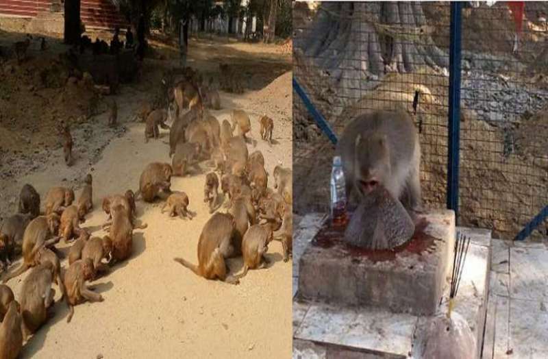 ଉତ୍ତରପ୍ରଦେଶ ସୀତାପୁର ଜିଲା ଠାରୁ ୭୦ କିଲୋମିଟର ଦୂରରେ ଥିବା ଅଟବା କୁରସଠ ଗାଁରେ ଏକ ମନ୍ଦିର ରହିଛି। ଏହି ମନ୍ଦିରରେ ମାଙ୍କଡ଼ଙ୍କ ପାଖରେ ଭୋଗ ଲାଗି ହୋଇଥାଏ। ଏଠାରେ ମାଙ୍କଡ଼ଙ୍କୁ ମଦ ପିଇବାକୁ ଦିଆଯିବା ପରମ୍ପରା ରହିଛି। ମନ୍ଦିରରେ କୌଣସି ପୂଜାରୀ ନ ଥାନ୍ତି। ମନ୍ଦିରରେ କବାଟ ଝରକା ମଧ୍ୟ ନାହିଁ। ଏଠାକୁ ଆସୁଥିବା ଶ୍ରଦ୍ଧାଳୁ ଭଗବାନଙ୍କୁ ପ୍ରସନ୍ନ କରିବା ପାଇଁ ମନ୍ଦିରରେ ମଦ ଭୋଗ ଲାଗି କରିଥାନ୍ତି। ପରେ ଏହାକୁ ମାଙ୍କଡ଼ଙ୍କୁ ପିଇବାକୁ ଦେଇଥାନ୍ତି। ଏହାଦ୍ୱାରା ମନୋସ୍କାମନା ପୂରଣ ହୋଇଥାଏ ବୋଲିସ୍ଥାନୀୟ ଲୋକଙ୍କ ବିଶ୍ୱାସ ରହିଛି । ଏଠାରେ ମଦ ଓ ଲିଆ ଭୋଗ ଲାଗି କରାଯାଏ।