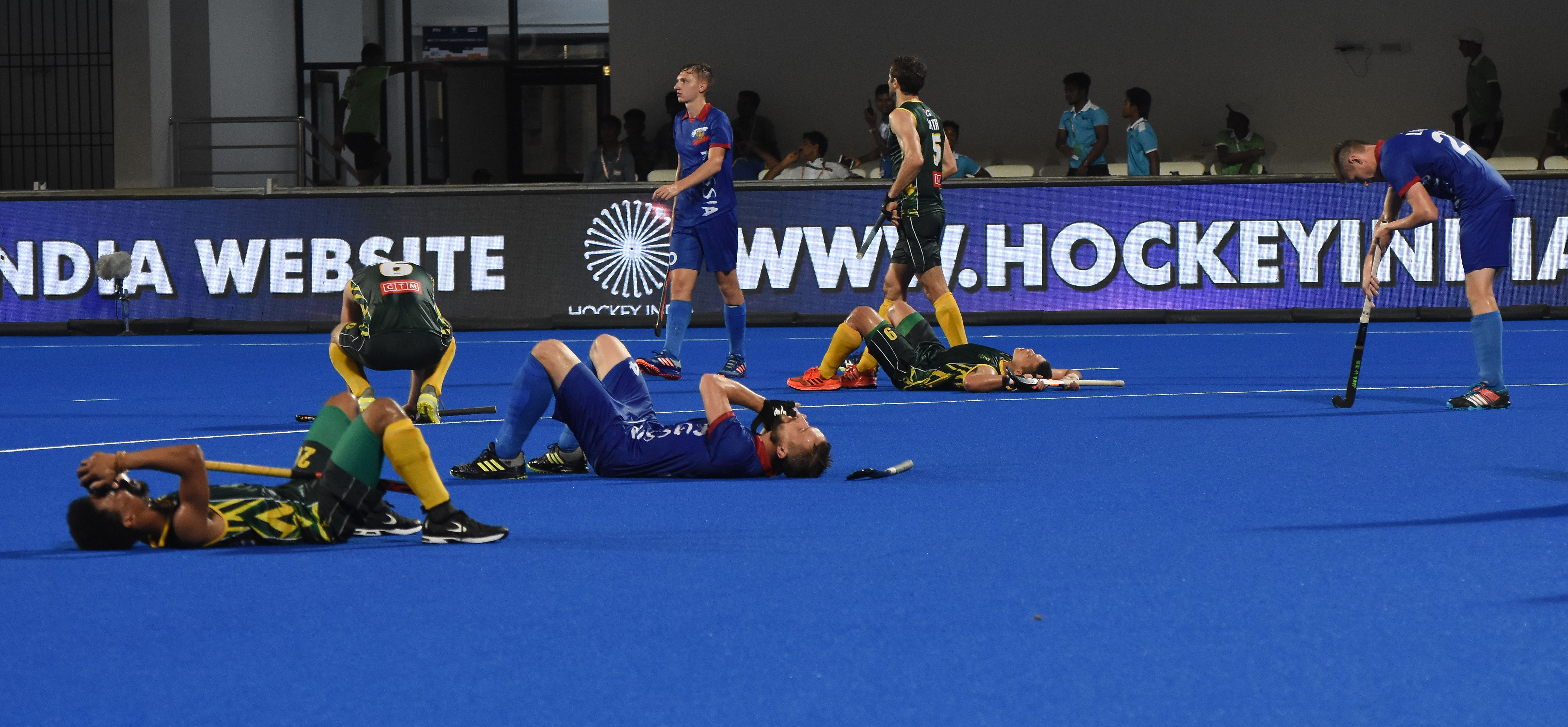 ଆଫ୍ରିକା ମ୍ୟାଚ୍ ବେଶ୍ ସଂଘର୍ଷପୂର୍ଣ୍ଣ ହୋଇଥିଲା। ଗ୍ରୁପ ପର୍ଯ୍ୟାୟରେ ଅପେକ୍ଷାକୃତ ଭଲ ଖେଳି ରୁଷିଆ କ୍ରସ୍ ଓଭରକୁ ଆସିଥିଲେ ହେଁ କଡ଼ା ଟକ୍କର ଦେଇଥିଲା ଦକ୍ଷିଣ ଆଫ୍ରିକା। ପ୍ରଥମ ଓ ଦ୍ୱିତୀୟ କ୍ବାର୍ଟରରେ ଉଭୟ ଦଳ ଏକାଧିକ ପେନାଲ୍ଟି କର୍ନର ପାଇଥିଲେ ହେଁ ତାହାକୁ ଗୋଲରେ ପରିଣତ କରିପାରି ନ ଥିଲେ। ପ୍ରଥମାର୍ଦ୍ଧ ଗୋଲଶୂନ୍ୟ ରହିବାପରେ ତୃତୀୟ କ୍ବାର୍ଟରରେ ଅଗ୍ରଣୀ ନେବାପାଇଁ ଉଦ୍ୟମ ଜୋରଦାର ହୋଇଥିଲା। ୪୦ତମ ମିନିଟରେ ମିଳିଥିବା ପେନାଲ୍ଟି କର୍ନରକୁ ଗୋଲରେ ପରିଣତ କରି ଦକ୍ଷିଣ ଆଫ୍ରିକାର ଏନକୋବିଲ ଏନଟୁଲି ମ୍ୟାଚରେ ଉଷ୍ମତା ଭରିଥିଲେ। ତୃତୀୟ କ୍ବାର୍ଟର ଶେଷସୁଦ୍ଧା ଦକ୍ଷିଣ ଆଫ୍ରିକା ୧-୦ ଗୋଲରେ ଅଗ୍ରଣୀ ନେଇଥିଲା। ମାତ୍ର ୪ର୍ଥ କ୍ବାର୍ଟର ଆରମ୍ଭର ଅଳ୍ପକିଛି ସମୟ ପରେ ଅର୍ଥାତ୍ ୪୭ତମ ମିନିଟରେ ରୁଷିଆକୁ ମିଳିଥିବା ପେନାଲ୍ଟି କର୍ନରକୁ ଗୋଲକରି ରୁଷିଆର ଜର୍ଜି ଆରୁସିଆ ମ୍ୟାଚକୁ ୧-୧ ସମାନ ସ୍ତରକୁ ନେଇ ଆସିଥିଲେ। ମାତ୍ର ଦକ୍ଷିଣ ଆଫ୍ରିକା ସହଜରେ ହାର ମାନିବାକୁ ପ୍ରସ୍ତୁତ ନ ଥିଲା। ୫୩ତମ ମିନିଟରେ ର଼୍ୟାନ ଜୁଲିଅସଙ୍କ ଫିଲ୍ଡ ଗୋଲ ବଳରେ ଦଳ ପୁଣି ଅଗ୍ରଣୀ ହାସଲ କରିଥିଲା। ଶେଷ ମିନିଟରେ ଗୋଲ ପରିଶୋଧ ପାଇଁ ରୁଷିଆ ସୁବର୍ଣ୍ଣ ସୁଯୋଗ ପାଇଥିଲା। ମାତ୍ର ପେନାଲ୍ଟି କର୍ନର ମିସ୍ କରି ଦଳ ଏହାକୁ ହାତଛଡ଼ା କରିଥିଲା। ଆକର୍ଷଣୀୟ ପ୍ରଦର୍ଶନ ପାଇଁ ଦକ୍ଷିଣ ଆଫ୍ରିକାର ଅଷ୍ଟିନ ସ୍ମିଥ ମ୍ୟାନ ଅଫ୍ ଦି ମ୍ୟାଚ ବିବେଚିତ ହୋଇଥିଲେ।