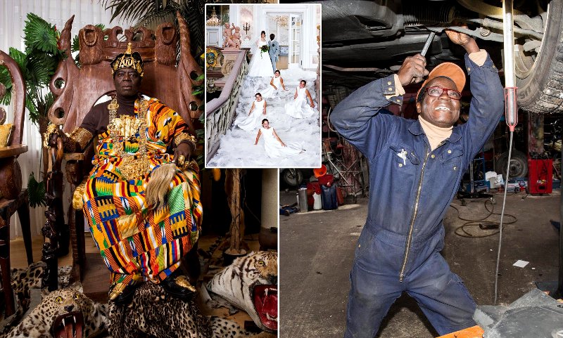 PIC BY CHRISTINA CZYBIK / CATERS NEWS - (PICTURED: King Bansah at home.) - Meet King Bansah, the part time monarch and full time MECHANIC! Dressed in all his royal finery, the African king, Cphas Bansah, helps to govern over two million Ghanaian and Togolese people. He is also regarded as a superior and spiritual chief of Ewe people in Togo. But despite his royal status as King Togbe Ngoryifia Cephas Kosi Bansah, hes not afraid to get his hands dirty and works as a full-time mechanic in Germany, governing his people over Skype. Although Cphas, 67, grew up in Ghana, he moved to Germany in 1970 before he was appointed king. - SEE CATERS COPY