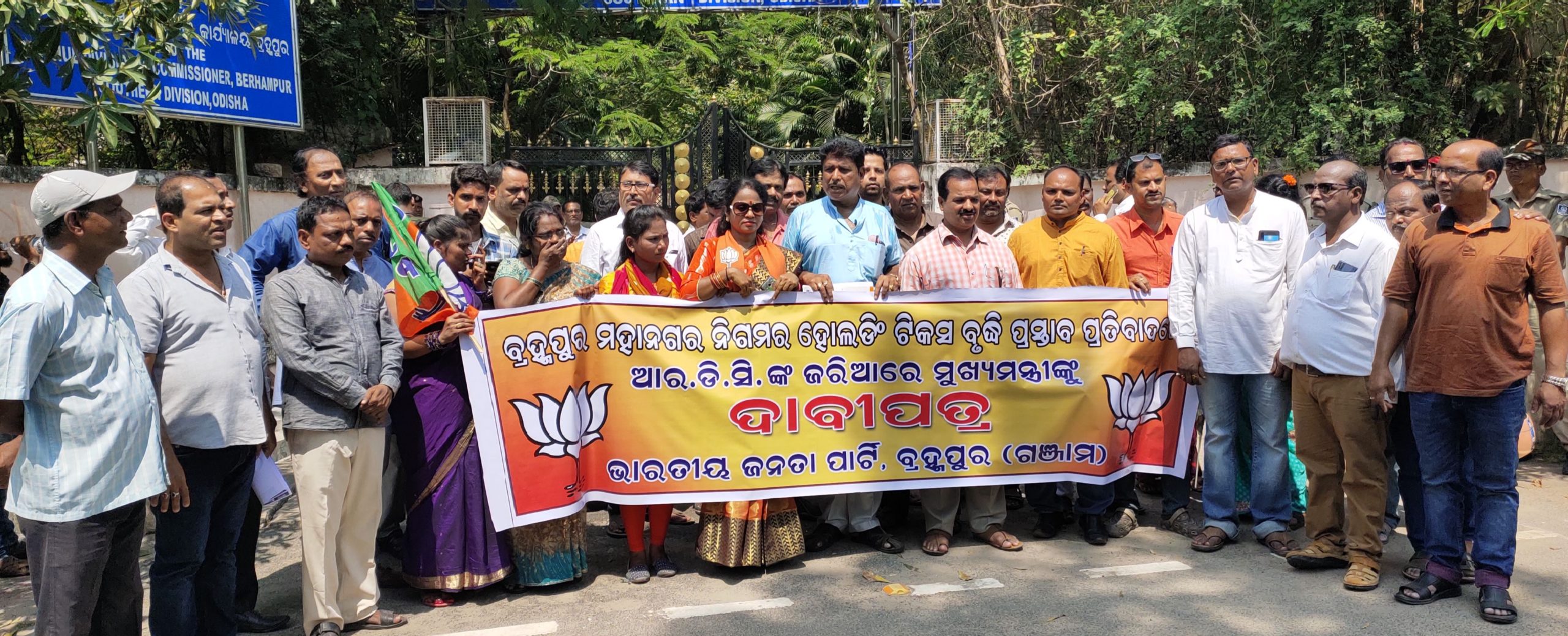 ଭାଜପାର ବରିଷ୍ଠ ନେତା ତଥା ପୂର୍ବତନ ଜିଲା ସଭାପତି କାହ୍ନୁ ଚରଣ ପତିଙ୍କ ନେତୃତ୍ୱରେ ଶତାଧିକ ଦଳୀୟ କର୍ମୀ ଆରଡିସିଙ୍କ ଅଫିସ ଆଗରେ ଏକାଠି ହୋଇଥିଲେ। ବିଭିନ୍ନ କ୍ଷେତ୍ରରେ ଗଞ୍ଜାମ ଜିଲା ପ୍ରତି ସରକାରୀ ଅବହେଳା ବିରୋଧରେ ନାରାବାଜି କରିଥିଲେ। ବ୍ରହ୍ମପୁର ମହାନଗର ନିଗମ (ବିଏମ୍ସି)ର ପ୍ରସ୍ତାବିତ ଲଗାମଛଡ଼ା ହୋଲଡିଂ ଟିକସ ବୃଦ୍ଧି କାର୍ଯ୍ୟକାରୀ ନ କରିବା ଏବଂ ଷ୍ଟାଣ୍ଡପୋଷ୍ଟ ପାଇପ ପାଣି ପାଇଁ ନିଗମ ହୋଲଡିଂ ଟିକସ ସହ ଆଦାୟ କରୁଥିବା ଜଳକର ବନ୍ଦ ପାଇଁ ଦାବି କରାଯାଇଥିଲା। ମୁଖ୍ୟମନ୍ତ୍ରୀଙ୍କ ଉଦ୍ଦେଶ୍ୟରେ ବିଭିନ୍ନ ଦାବି ସମ୍ବଳିତ ସ୍ମାରକପତ୍ର ଆରଡିସିଙ୍କୁ ପ୍ରଦାନ କରାଯାଇଥିଲା।