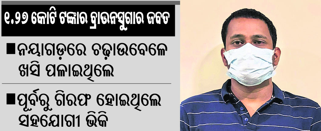 ଭୁବନେଶ୍ୱର, ୨୨/୨(ବ୍ୟୁରୋ):ନୟାଗଡ଼ ଜିଲା ଟାଉନ୍ ଥାନା ଅନ୍ତର୍ଗତ ଉଦୟପଥ ଲେନ୍ର ଏକ ଭଡାଘରୁ ୩ କୋଟିରୁ ଊର୍ଦ୍ଧ୍ୱ ଟଙ୍କାର ବ୍ରାଉନସୁଗାର ଜବତ ମାମଲାର ମୁଖ୍ୟ ଅଭିଯୁକ୍ତ ତଥା ମାଷ୍ଟରମାଇଣ୍ଡ୍ ଧରାପଡ଼ିଛନ୍ତି। କ୍ରାଇମବ୍ରାଞ୍ଚର ସ୍ପେଶାଲ ଟାସ୍କ ଫୋର୍ସ (ଏସ୍ଟିଏଫ୍) ପାଇଁ ସେ ଓ୍ବାଣ୍ଟେଡ୍ ଥିଲେ। ରବିବାର ରାତିରେ ରାଜଧାନୀ ଉପକଣ୍ଠ ୧୬ ନଂ. ଜାତୀୟ ରାଜପଥର ପାହାଳ କ୍ରସିଂ ନିକଟରୁ ତାଙ୍କୁ ଗିରଫ କରାଯାଇଛି। ସେ ହେଲେ ଖୋର୍ଦ୍ଧା ଜିଲା ଜଟଣୀ ଥାନା ମୁଣ୍ଡିଆ ସାହିର ଶିବ ପ୍ରସାଦ ଦାସ ଓରଫ ଶିବୁ। ତାଙ୍କଠାରୁ ୧ କେଜି ୨୨୭ ଗ୍ରାମର ବ୍ରାଉନସୁଗାର ଜବତ କରାଯାଇଛି। ଏହାର ଆନୁମାନିକ ମୂଲ୍ୟ ୧ କୋଟି ୨୭ ଲକ୍ଷ ଟଙ୍କା ହେବ। ଏଥିସହ ଗୋଟିଏ ବାଇକ ଓ ୫ ମୋବାଇଲ ଫୋନ୍ ମଧ୍ୟ ଜବତ କରାଯାଇଛି। ଏସ୍ଟିଏଫ୍ ଏନ୍ଡିପିଏସ୍ ଆକ୍ଟରେ ଏକ ମାମଲା(ନଂ.୫/୨୦୨୨) ରୁଜୁ କରି ଶିବୁଙ୍କୁ କୋର୍ଟଚାଲାଣ କରିଥିଲା। ଜାମିନ ନାମଞ୍ଜୁର ହେବାରୁ ତାଙ୍କୁ ବିଚାର ବିଭାଗୀୟ ହାଜତକୁ ପଠାଇ ଦିଆଯାଇଛି। ଓଡ଼ିଶାର ବିଭିନ୍ନ ଜିଲା ଶିବୁଙ୍କ ନାମରେ ୬ଟି ଆପରାଧିକ ମାମଲା ରହିଥିବା ଏସ୍ଟିଏଫ୍ ସୂଚନା ଦେଇଛି। ତେବେ ତାଙ୍କ ସହ ସାମିଲ ଥିବା ଅନ୍ୟ ସହଯୋଗୀଙ୍କୁ ଧରିବାକୁ ଏସ୍ଟିଏଫ୍ ଅନୁସନ୍ଧାନ ଚଳାଇଛି।