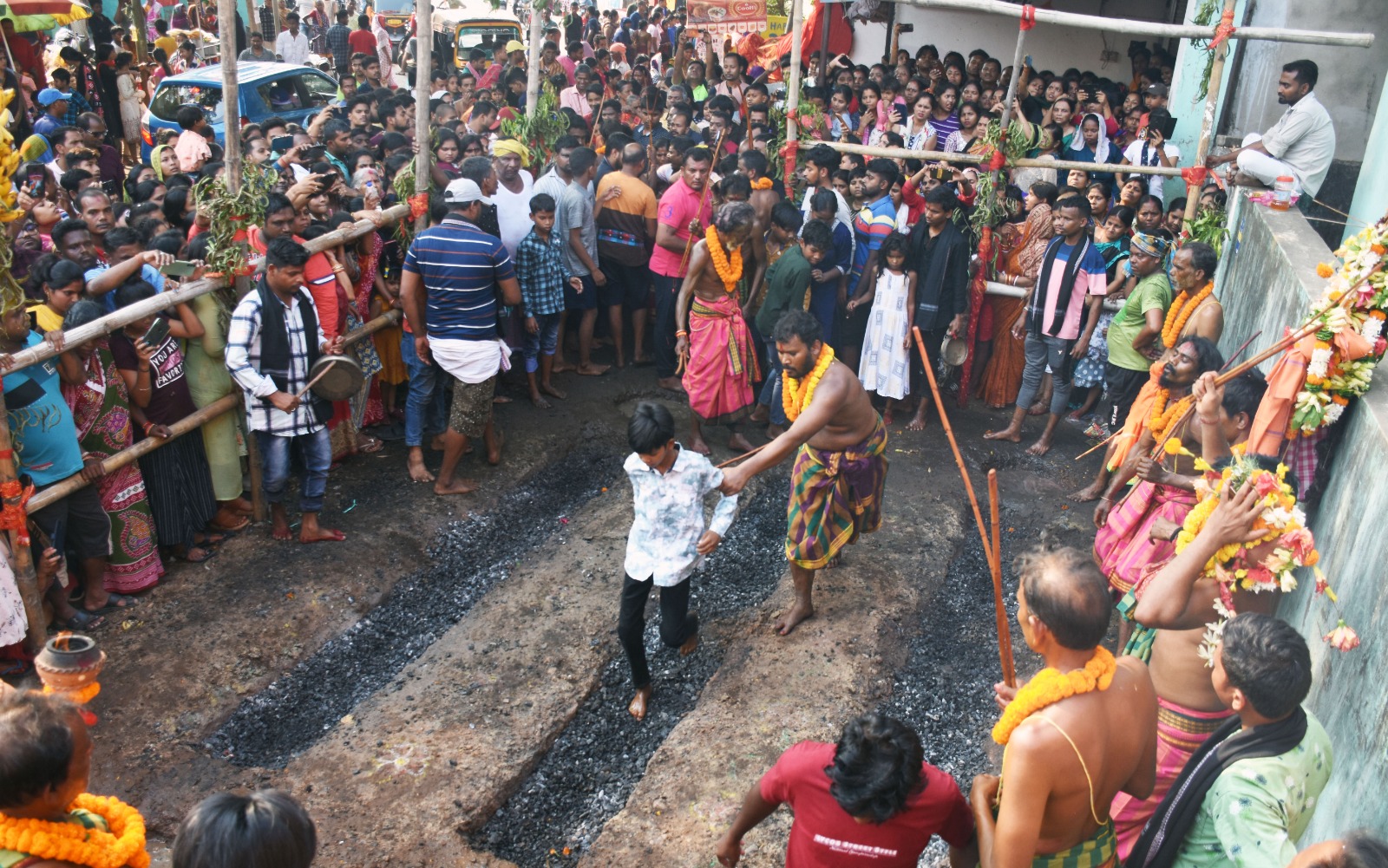 ରସୁଲଗଡ ମା ମଙ୍ଗଳା ମନ୍ଦିରରେ ଝାମୁଯାତ୍ରାରେ ଭକ୍ତମାନେ ନିଆଁରେ ଚାଲୁଛନ୍ତି