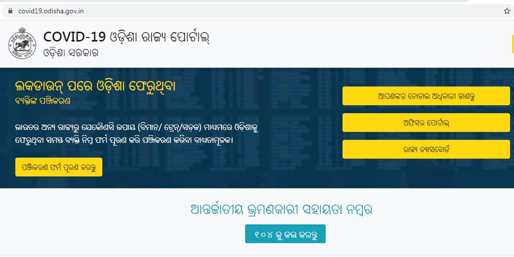 କେହି ଓଡ଼ିଶା ଆସିବାକୁ ଚାହୁଁଥିଲେ ତାଙ୍କୁ ପଞ୍ଜୀକରଣ କରିବାକୁ ପଡ଼ିବ। ସେ ସହରାଞ୍ଚଳ ହେଉ ଅଥବା ଗ୍ରାମାଞ୍ଚଳ, ସମସ୍ତଙ୍କ ପାଇଁ ପଞ୍ଜିକରଣ ବାଧ୍ୟତାମୂଳକ ଅଟେ। ସେଥିପାଇଁ ପ୍ରଥମେ ରାଜ୍ୟ ସରକାରଙ୍କ ପକ୍ଷରୁ ଦିଆଯାଇଥିବା ପୋର୍ଟାଲ https://covid19.odisha.gov.in/ କୁ ଯିବାକୁ ପଡ଼ିବ। ସବୁ ପଞ୍ଚାୟତରେ ନୋଡାଲ ଅଫିସର, ସହରର ବିଭିନ୍ନ ଓ୍ବାର୍ଡରେ ଓ୍ବାଡ୍ ନୋଡାଲ ଅଫିସର ନିଯୁକ୍ତ କରାଯାଇଛି। ସେମାନେ ରେଜିଷ୍ଟ୍ରେଶନ ପାଇଁ ସମସ୍ତଙ୍କୁ ସାହାଯ୍ୟ କରିବେ। ପଞ୍ଜିକରଣ ପାଇଁ ତିନୋଟି ଉପାୟ ରହିଛି।