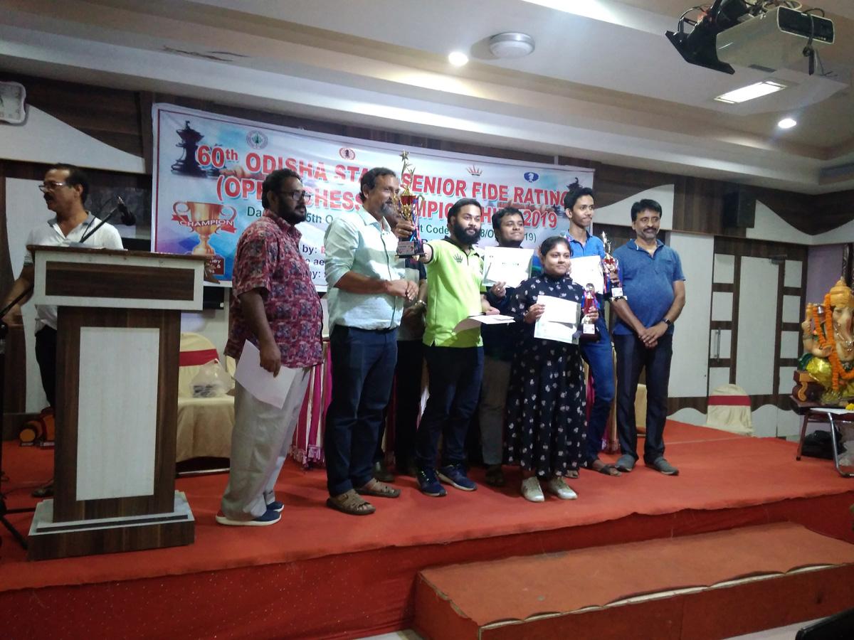 ବିଶାଖାପାଟଣା,୬।୧୦(ସ୍ପୋଟ୍ସ ବ୍ୟୁରୋ)- ବାଲେଶ୍ୱର ଜିଲା ଚେସ୍ ଆସୋସିଏଶନ ଆନୁକୂଲ୍ୟରେ ବିନୟ ପରାଡାଇଜ୍ରେ ଚାଲିଥିବା ୬୦ତମ ଓଡ଼ିଶା ରାଜ୍ୟ ଫିଡେ ରେଟିଂ (ଓପନ୍) ଚେସ୍ ପ୍ରତିଯୋଗିତାରେ ପୁରୀର ରାଜେଶ ନାୟକ ଚାମ୍ପିୟନ ହେବାର ଗୌରବ ଅର୍ଜନ କରିଛନ୍ତି। ଶନିବାର ଅନ୍ତିମ ରାଉଣ୍ଡ ଶେଷ ସୁଦ୍ଧା ରାଜେଶ ସାଢ଼େ ୭ ପଏଣ୍ଟ ହାସଲ କରି ଶୀର୍ଷରେ ରହିବା ସହ ଟାଇଟଲ ହାସଲ କରିଛନ୍ତି। ଟ୍ରଫି ସହ ସେ ୮ ହଜାର ଟଙ୍କା ପୁରସ୍କାର ଜିତିଛନ୍ତି। ସେହିପରି କଟକର ନିଲସୁ ପଟ୍ଟନାୟକ ସମାନ ୭.୫ ପଏଣ୍ଟ ହାସଲ କରିଥିଲେ ମଧ୍ୟ ଦ୍ୱିତୀୟ ସ୍ଥାନରେ ରହି ଟ୍ରଫି ସହ ୬ ହଜାର ଟଙ୍କାର ପୁରସ୍କାର ଜିତିଛନ୍ତି। ଅନ୍ୟପଟେ ଖୋର୍ଦ୍ଧାର ରାକେଶ କୁମାର ନାୟକ ୭.୫ ପଏଣ୍ଟ ହାସଲ କରି ତୃତୀୟ ସ୍ଥାନରେ ରହି ଟ୍ରଫି ସହ ୪ ଓ ଖୋର୍ଦ୍ଧାର ଡବ୍ଲ୍ୟୁଏଫ୍ଏମ୍ ରୁତୁମ୍ବରା ବିଧାର ୭ ପଏଣ୍ଟ ପାଇ ଚତୁର୍ଥ ସ୍ଥାନରେ ରହି ଟ୍ରଫି ସହ ୩ ହଜାର ଟଙ୍କା ପୁରସ୍କାର ଜିତିଛନ୍ତି। ଖୋର୍ଦ୍ଧାର ଅନ୍ୟତମ ଖେଳାଳି ଓମ୍ ମିଶ୍ର ୭ ପଏଣ୍ଟ ହାସଲ ପଞ୍ଚମ ସ୍ଥାନରେ ରହି ୨ ହଜାର ଟଙ୍କା ପୁରସ୍କାର ଜିତିଛନ୍ତି। ମୋଟ ୨୫ଜଣ ଖେଳାଳିଙ୍କୁ ପୁରସ୍କୃତ କରାଯାଇଛି।
