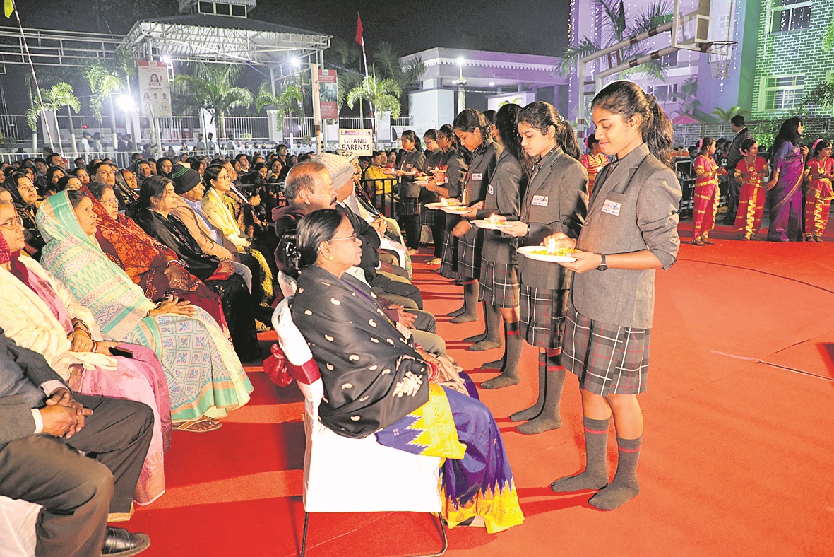 ଶନିବାର ପଟିଆସ୍ଥିତ ଓଡିଏମ୍ ପବ୍ଲିକ୍ ସ୍କୁଲ୍ର ୩୧ତମ ବାର୍ଷିକୋତ୍ସବ ‘ସ୍ପେକ୍ଟ୍ରା-୨୦୧୯’ ଅବସରରେ ପୂଜ୍ୟପୂଜା ସମାରୋହ ଓ ଜେଜେମା-ଜେଜେବାପା ଦିବସ ଅନୁଷ୍ଠିତ ହୋଇଥିଲା। ଏଥିରେ ମୁଖ୍ୟଅତିଥି ଭାବେ ଯୋଗଦେଇ ମନ୍ତ୍ରୀ ପାଣିଗ୍ରାହୀ କହିଲେ, ଭାରତୀୟ ସଂସ୍କୃତି ଓ ପରମ୍ପରାରେ ପୂଜ୍ୟପୂଜା ସ୍ଥାନ ସ୍ବତନ୍ତ୍ର। ଏହି ଅତୀତ ଗୌରବକୁ ସ୍ମରଣ କରିବା ସହ ଛାତ୍ରୀଛାତ୍ର ଗୁରୁ-ଗୁରୁଜନ ଏବଂ ମାତାପିତାଙ୍କ ପାଇଁ ଜୀବନ ଉତ୍ସର୍ଗ କରିବା ଭଳି କାର୍ଯ୍ୟ କଲେ ଅନ୍ୟମାନଙ୍କ ପାଇଁ ଉଦାହରଣ ହୋଇ ରହିବ। ଓଡିଏମ୍ ଶିକ୍ଷାନୁଷ୍ଠାନ ସମୂହର ପ୍ରତିଷ୍ଠାତା ତଥା ଅଧ୍ୟକ୍ଷ ଡ.ସତ୍ୟବ୍ରତ ମୀନକେତନଙ୍କ ପୌରୋହିତ୍ୟରେ ଅନୁଷ୍ଠିତ ଉତ୍ସବରେ ମନ୍ତ୍ରୀ ପାଣିଗ୍ରାହୀ ବିଦ୍ୟାଳୟର ବହୁମୁଖୀ ଯୋଜନା, ଜାତୀୟ ଏବଂ ଅନ୍ତର୍ଜାତୀୟ ସ୍ତରରେ ସଫଳତାକୁ ପ୍ରଶଂସା କରିଥିଲେ। ଏହି ଅବସରରେ ବିଦ୍ୟାଳୟ ନିର୍ଦ୍ଦେଶିକା ଇନ୍ଦୁମତୀ ରାୟ ଅତିଥିମାନଙ୍କୁ ସମ୍ବର୍ଦ୍ଧିତ କରିଥିବାବେଳେ ବରିଷ୍ଠ ପରାମର୍ଶଦାତା ବ୍ରହ୍ମାନନ୍ଦ ରାଉତ ଅତିଥି ପରିଚୟ ପ୍ରଦାନ କରିଥିଲେ। ବିଭିନ୍ନ କ୍ଷେତ୍ରରେ କୃତିତ୍ୱ ଅର୍ଜନ କରିଥିବା ଛାତ୍ରୀଛାତ୍ରଙ୍କୁ ପୁରସ୍କୃତ କରାଯାଇଥିଲା। ବିଦ୍ୟାଳୟ ପରିଚାଳନା କମିଟି ସଭାପତି ପ୍ରଫେସର ଡ. ପି.କେ. ଦାସ, ସଦସ୍ୟା ଡ. ଜ୍ୟୋତ୍ସ୍ନା ମହାପାତ୍ର, ସିଓଓ ସ୍ବୟନ୍ ସତ୍ୟେନ୍ଦୁ ପ୍ରମୁଖ ଉପସ୍ଥିତ ଥିଲେ। କାର୍ଯ୍ୟକ୍ରମକୁ ଉପାଧ୍ୟକ୍ଷା ଝିନୁକ୍ ଦାରାୟ ପରିଚାଳନା କରିଥିଲେ। ଛାତ୍ରୀଛାତ୍ରଙ୍କ ଦ୍ୱାରା ସାଂସ୍କୃତିକ କାର୍ଯ୍ୟକ୍ରମ ଅନୁଷ୍ଠିତ ହୋଇଥିଲା।