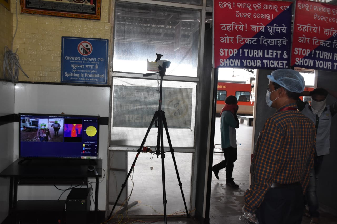 ଭୁବନେଶ୍ୱର ରେଳଷ୍ଟେଶନରେ ଯାତ୍ରୀଙ୍କର ଥର୍ମାଲ ସ୍କ୍ରିନିଙ୍ଗ କରାଯାଉଛି