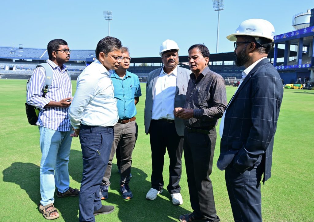 ବାରବାଟୀ ଷ୍ଟାଡିୟମ୍‌ରେ ଦର୍ଶକଙ୍କ ପାଇଁ ଉଦ୍ଦିଷ୍ଟ ଗ୍ୟାଲେରୀକୁ ଅନୁଧ୍ୟାନ କରୁଛନ୍ତି ଭୁବନେଶ୍ବରରୁ ଆସିଥିବା ବିଶେଷଜ୍ଞ ଦଳ