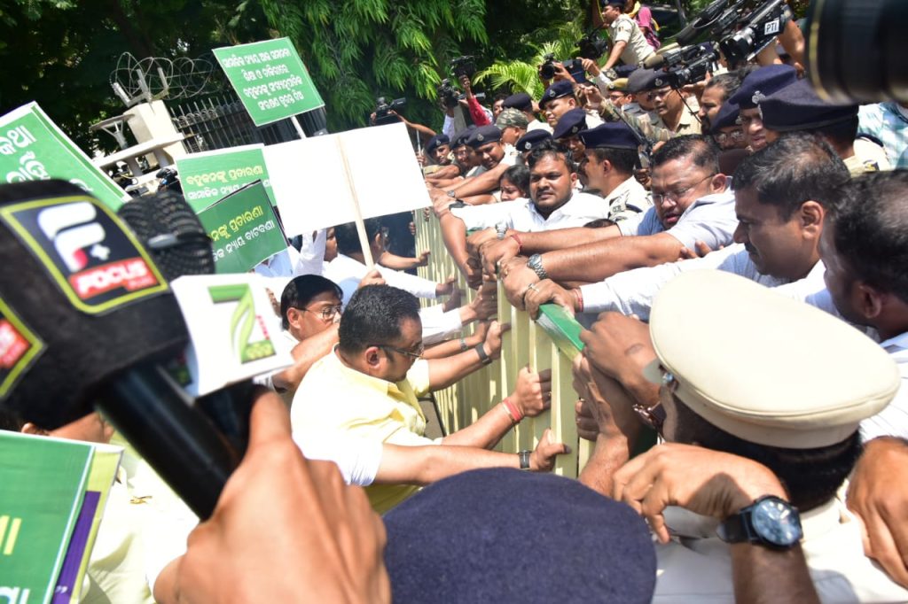 ରାଜଧାନୀ ଭୁବନେଶ୍ୱର ପିଏମଜି ଛକ ବିଧାନସଭା ସମ୍ମୁଖରେ ବିଜେଡି ଏବଂ କଂଗ୍ରେସର ପ୍ରତିବାଦ