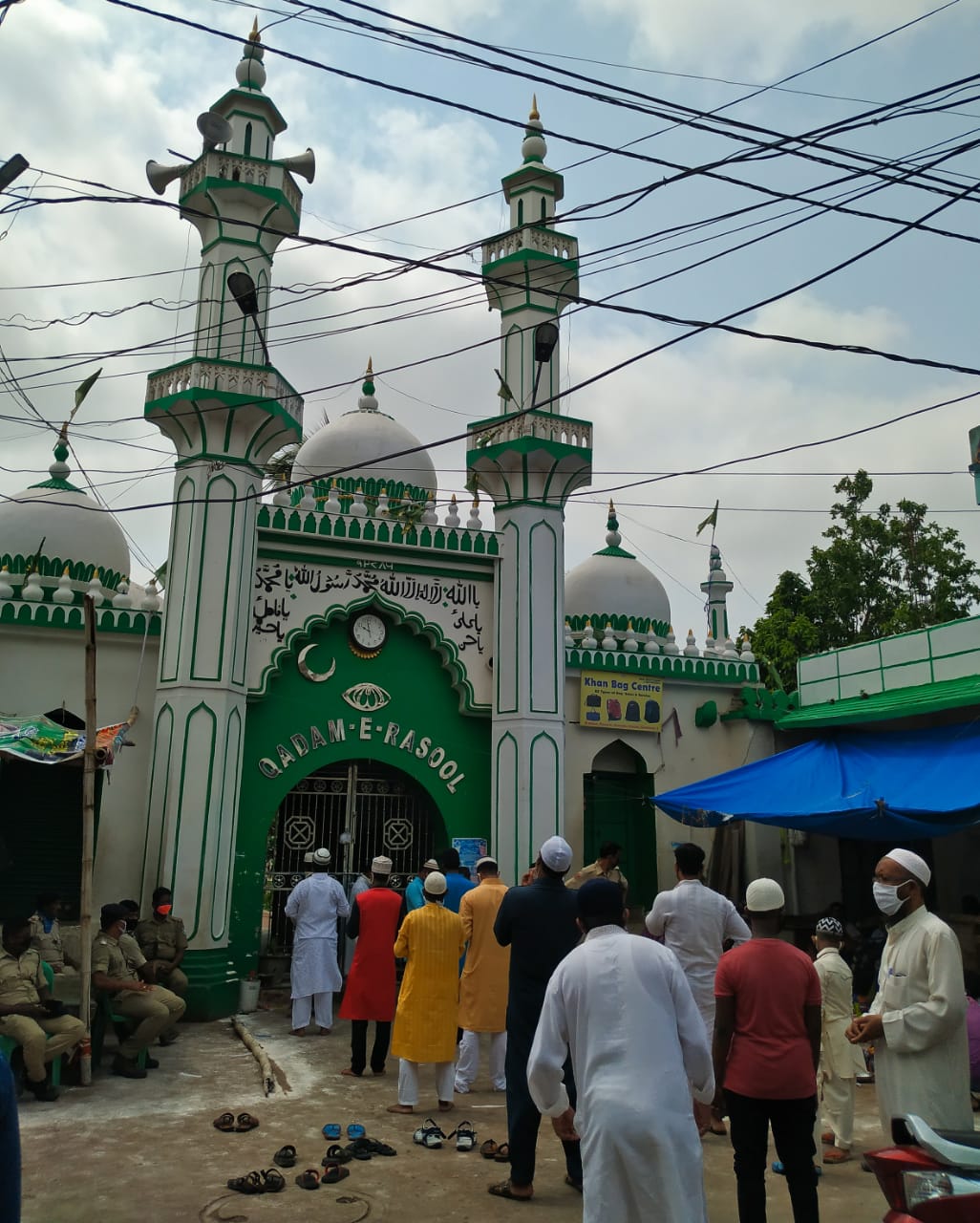 ଦରଘାବଜାର ସ୍ଥିତ କ୍ୟୁଡମ୍-ଇ-ରସୁଲ ବନ୍ଦ ଥିବା ବେଳେ କରୋନା କଟକଣାକୁ ମାନି ପବିତ୍ର ଇଦ୍-ଉଲ୍-ଫିତର ପାଳନ ଅବସରରେ ମୁସଲମାନଧର୍ମୀ ବ୍ୟକ୍ତି ନମାଜ ପାଠ କରୁଛନ୍ତି।