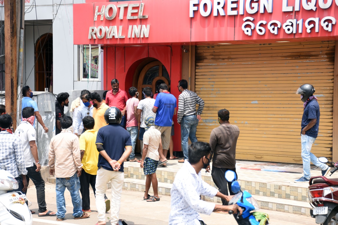 କଟକ ରୋଡରେ ମଦଦୋକାନ ଆଗରେ ପୋଲିସ ଗାଡ଼ି ଗଲା ପରେ ଦୋକାନ ସମ୍ମୁଖରେ ନାହିଁ ନ ଥିବା ଭିଡ଼।