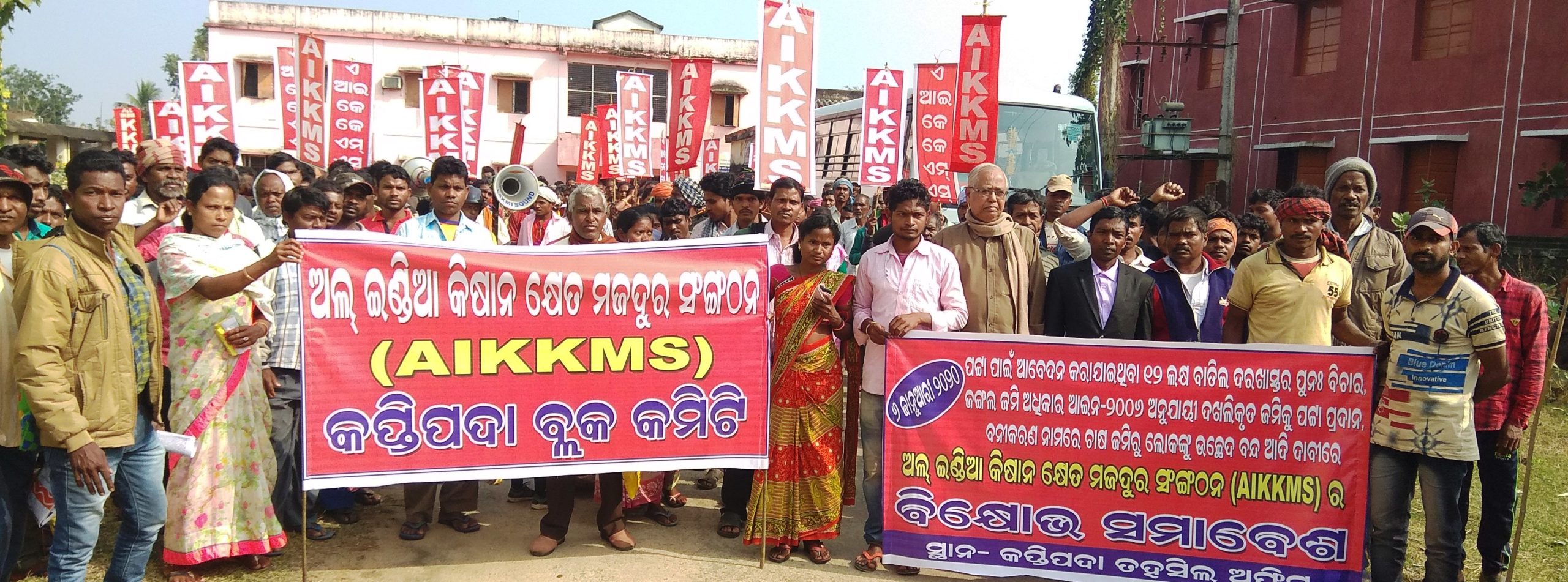 କପ୍ତିପଦା,୭ା୧(ଡ଼ି.ଏନ୍.ଏ.)- ଅଲ୍ ଇଣ୍ଡିଆ କିଷାନ୍ କ୍ଷେତ ମଜଦୁର ସଂଗଠନ (ଏଆଇକେକେଏମ୍ଏସ୍) ପକ୍ଷରୁ କପ୍ତିପଦା ତହସିଲଦାରଙ୍କ ଅଫିସ୍ ସମ୍ମୁଖରେ ସୋମବାର ବିକ୍ଷୋଭ ପ୍ରଦର୍ଶନ କରାଯାଇଛି। ହଜାର ହଜାର ସଂଖ୍ୟାରେ ଆଦିବାସୀ ମହିଳା, ପୁରୁଷ, ଛୋଟଛୋଟ ପିଲାମାନେ ବିକ୍ଷୋଭରେ ସାମିଲ ହୋଇଥିଲେ। ବିକ୍ଷୋଭ ପୂର୍ବରୁ ସ୍ଥାନୀୟ ଗାନ୍ଧୀ ଛକଠାରୁ ହାତରେ ପ୍ଲାକାର୍ଡ଼, ବ୍ୟାନର୍ ଧରି ଦଖଲୀକୃତ ଜମିକୁ ପଟ୍ଟା ଦିଅ, ଏନ୍କ୍ରୋଚ୍ମେଣ୍ଟ୍ ଫାଇନ୍ ବନ୍ଦ କର ଆଦି ଦାବି ନେଇ କପ୍ତିପଦା ତହସିଲଦାରଙ୍କ ଅଫିସ୍ ସମ୍ମୁଖରେ ସମବେତ ହୋଇଥିଲେ। ଏଆଇକେକେଏମ୍ଏସ୍ର ମୟୂରଭଞ୍ଜ ଜିଲା କମିଟି-୨ର ସଭାପତି କମ୍ରେଡ ସାଦ ବଦ୍ରାଙ୍କ ଅଧ୍ୟକ୍ଷତାରେ ଏକ ସଭା ଅନୁଷ୍ଠିତ ହୋଇଥିଲା। ଏହି ବିକ୍ଷୋଭ ସମାବେଶରେ ମୁଖ୍ୟବକ୍ତାଭାବେ ଅଲ୍ ଇଣ୍ଡିଆ କିଷାନ୍ କ୍ଷେତ ମଜଦୁର ସଂଗଠନର ରାଜ୍ୟ ସମ୍ପାଦକ କମ୍ରେଡ ରଘୁନାଥ ଦାସ ଯୋଗଦେଇ ପୁରୁଷାନୁକ୍ରମେ ଦଖଲ କରିଆସୁଥିବା ଆଦିବାସୀମାନଙ୍କ ଜମି ସେମାନଙ୍କ ନାମରେ ପଟ୍ଟା ଦେବା ପରିବର୍ତ୍ତେ ବନୀକରଣ, ଶିଳ୍ପାୟନ ଆଦି ନାଁରେ କିଭଳି ଭାବେ ସେମାନଙ୍କ ଭିଟାମାଟିରୁ ଉଚ୍ଛେଦ କରାଯାଉଛି, ସେ ବିଷୟରେ ବିସ୍ତୃତ ଭାବେ ଆଲୋଚନା କରିବା ସହିତ ସେମାନଙ୍କ ଜମି ପଟ୍ଟା ଦେବା ଦାବିରେ ଦୀର୍ଘସ୍ଥାୟୀ ଗଣ ଆନ୍ଦୋଳନ ଗଢ଼ି ତୋଳିବା ପାଇଁ ଆହ୍ବାନ କରିଥିଲେ। ଅନ୍ୟମାନଙ୍କ ମଧ୍ୟରେ ସଂଗଠନର ଜିଲା ସମ୍ପାଦକ କମ୍ରେଡ ବାଙ୍ଗରା ଉଗ୍ରସାଣ୍ଡି, ଏସ୍ୟୁସିଆଇ(କମ୍ୟୁନିଷ୍ଟ୍)ର କପ୍ତିପଦା ଆଞ୍ଚଳିକ କମିଟିର ସମ୍ପାଦକ ତଥା ବରିଷ୍ଠ କୃଷକ ନେତା କମ୍ରେଡ ଶ୍ୟାମ ବାନରା, ସୁବୁଦ୍ଧିଆ ହାଇବୁରୁ, ଯୁବରାଜ ସାମାଡ଼ ଓ ଉଦୟ ସାମାଡ଼ ପ୍ରମୁଖ ଏକ ପ୍ରତିନିଧି ମଣ୍ଡଳୀ ମୁଖ୍ୟମନ୍ତ୍ରୀଙ୍କ ୬ଦଫା ଦାବି ସମ୍ବଳିିତ ଏକ ସ୍ମାରକପତ୍ର କପ୍ତିପଦା ତହସିଲଦାରଙ୍କୁ ପ୍ରଦାନ କରିଥିଲେ।