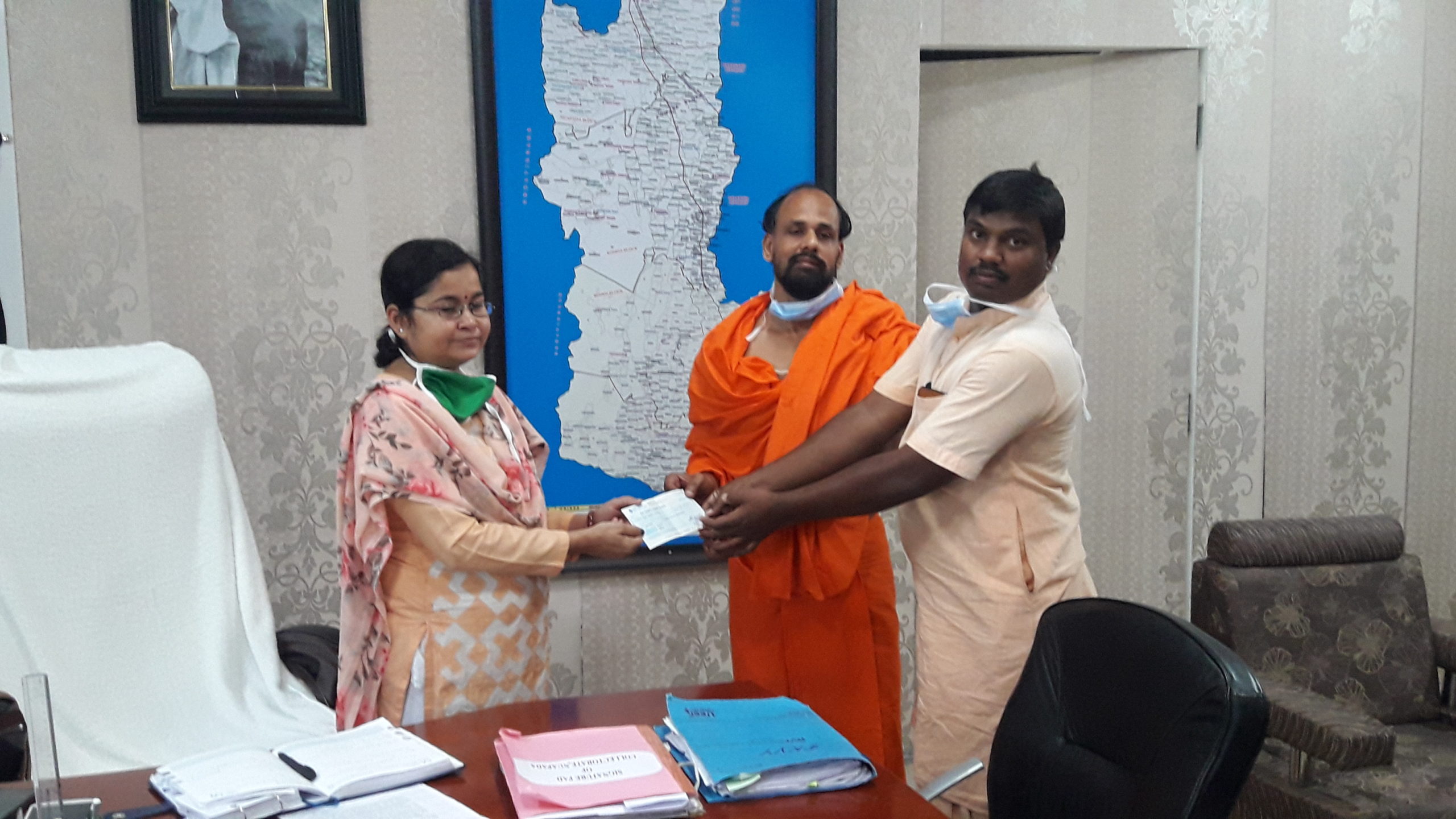 ନୂଆପଡା ଅଫିସ,୧୭ା୪- କରୋନା ମୁକାବିଲା ପାଇଁ ନୂଆପଡା ହରିପୁରସ୍ଥିତ ଗୁରୁକୂଳ ଆଶ୍ରମ ତରଫରୁ ମୁଖ୍ୟମନ୍ତ୍ରୀ ଓ ପ୍ରଧାନମନ୍ତ୍ରୀଙ୍କ ରିଲିଫ ପାଣ୍ଠିକୁ ସହାୟତା କରାଯାଇଛି ା ଶୁକ୍ରବାର ପୂର୍ବାହ୍ନରେ ଜିଳାପାଳ ମଧୁସ୍ମିତା ସାହୁଙ୍କୁ ତାଙ୍କ କାର୍ଯ୍ୟାଳୟରେ ଗୁରୁକୁଳ ଆଶ୍ରମ ମୁଖ୍ୟ ଆଚାର୍ଯ୍ୟ ସୁଦର୍ଶନ ଦେବ ପ୍ରଧାନମନ୍ତ୍ରୀଙ୍କ ରିଲିଫ ପାଣ୍ଠିକୁ ୧ଲକ୍ଷ ଏବଂ ମୁଖ୍ୟମନ୍ତ୍ରୀଙ୍କ ପାଣ୍ଠିକୁ ୩୧ହଜାର ଟଙ୍କାର ଚେକ ପ୍ରଦାନ କରିଛନ୍ତି। ସେହିପରି ମୁଖ୍ୟମନ୍ତ୍ରୀ ରିଲିଫ ପାଣ୍ଠିକୁ ନୂଆପଡା ବିହାରୀ ସଂଗଠନ ତରଫରୁ ୩୧ହଜାର ଏବଂ ସାହୁ ସମାଜ ତରଫରୁ ୫୧ହଜାର ଟଙ୍କାର ସହାୟତା ରାଶି ଚେକ ପ୍ରଦାନ କରାଯାଇଛି।
