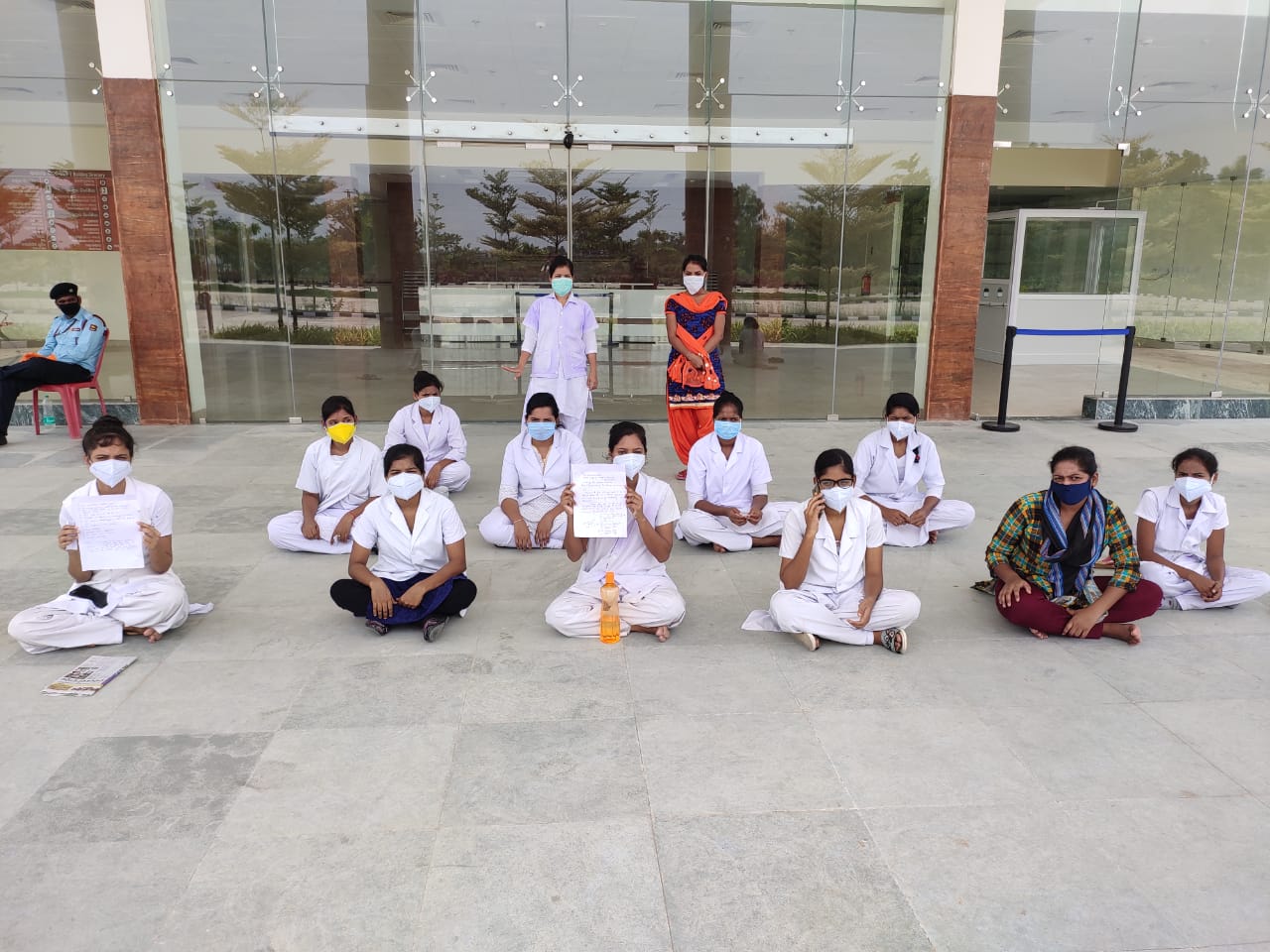 ବ୍ରହ୍ମପୁର ଅଫିସ, ୧୧।୫ : କରୋନା ମୁକାବିଲାରେ ନର୍ସଙ୍କ ଭୂମିକା ଅତ୍ୟନ୍ତ ଗୁରୁତ୍ୱପୂର୍ଣ୍ଣ। କୋଭିଡ଼ -୧୯ ହସ୍ପିଟାଲରେ ନର୍ସମାନେ ଦିନରାତି ଲୋକଙ୍କୁ ସେବା ଯୋଗାଇ ଆସୁଛନ୍ତି। ମାତ୍ର କାର୍ଯ୍ୟରତ ଆଗଧାଡିର ଏହି କରୋନା ଯୋଦ୍ଧାଙ୍କୁ ଏବେ ଅଣଦେଖା କରାଯାଉଛି। କୌଣସି ଆନୁସଙ୍ଗିକ ସୁବିଧା ମିଳୁ ନ ଥିବା ପ୍ରତିବାଦରେ ଗଞ୍ଜାମ ଜିଲା ଏମ୍କେସିଜି ମେଡିକାଲରେ କାର୍ଯ୍ୟରତ ନର୍ସ ଓ ସ୍ବାସ୍ଥ୍ୟକର୍ମୀ ତୀବ୍ର ଅସନ୍ତୋଷ ପ୍ରକାଶ କରିବା ସହ ଧାରଣାରେ ବସିଛନ୍ତି।