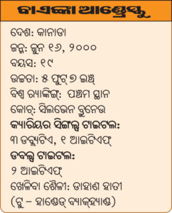 କାନାଡା ପାଇଁ ଇତିହାସ ସୃଷ୍ଟି କରିଛନ୍ତି ୧୯ ବର୍ଷୀୟା ମହିଳା ଟେନିସ ଖେଳାଳି ବାଏଙ୍କା ଆଣ୍ଡ୍ରେସ୍କୁ। ସେ ୟୁଏସ୍ ଓପନ୍ ଟାଇଟଲ ହାସଲ କରି କାନାଡ଼ାର ପ୍ରଥମ ଖେଳାଳିଭାବେ କୌଣସି ମେଜର ତଥା ଗ୍ରାଣ୍ଡସ୍ଲାମ ଟାଇଟଲ ହାସଲ କରି ଇତିହାସ ସୃଷ୍ଟି କରିଛନ୍ତି। ମହିଳା ସିଙ୍ଗଲ୍ସ ଫାଇନାଲ ମ୍ୟାଚ୍ରେ ସେ ଅଭିଜ୍ଞ ଆମେରିକୀୟ ତାରକା ସେରେନା ଓ୍ବିଲିୟମ୍ସଙ୍କୁ ୬-୩, ୭-୫ ସେଟ୍ରେ ପରାସ୍ତ କରି ଚାମ୍ପିୟନ ହୋଇଛନ୍ତି। ବିଭିନ୍ନ ଦୃଷ୍ଟିକୋଣରୁ ଏହି ବିଜୟ ଆଣ୍ଡ୍ରେସ୍କୁଙ୍କ ପାଇଁ ବିଶେଷ ଭାବେ ମହତ୍ତ୍ୱ ରଖୁଛି। ସେହିପରି ଏହି ପରାଜୟ ସେରେନାଙ୍କ ପାଇଁ ବିଶେଷ ମହଙ୍ଗା ସାବ୍ୟସ୍ତ ହୋଇଛି।