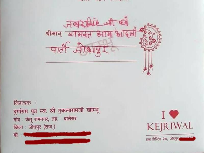 ଯୋଧପୁର,୧୭।୨: ତୃତୀୟଥର ପାଇଁ ଦିଲ୍ଲୀରେ କ୍ଷମତା ଦଖଲ କରିବା ପରେ ମୁଖ୍ୟମନ୍ତ୍ରୀ ଅରବିନ୍ଦ କେଜରିଓ୍ବାଲଙ୍କ ଲୋକପ୍ରିୟତା ଏବେ ବଢ଼ିବାରେ ଲାଗିଛି। ରାଜସ୍ଥାନ ଯୋଧପୁରର ବାଲେସର ଅଞ୍ଚଳର କେତୁ ରାମନଗରରେ ବାସ କରୁଥିବା ଦୁର୍ଗାରାମ ଖାମ୍ବୁ ତାଙ୍କ ପୁଅ ନୀଳେଶର ବିବାହ ନିମନ୍ତ୍ରଣ କାର୍ଡରେ କେଜରିଓ୍ବାଲଙ୍କ ନାମ ଛାପିଛନ୍ତି। ନୀଳେଶଙ୍କ ବିବାହ ଫେବୃୟାରୀ ୨୧ରେ ଲକ୍ଷ୍ମୀତାଙ୍କ ସହିତ ଅନୁଷ୍ଠିତ ହେବ। ବିବାହ କାର୍ଡରେ କେଜରିଓ୍ବାଲ ଆଇ ଲଭ୍ ୟୁ ବୋଲି ଲେଖାଯାଇଛି। ଏବେ ଏହି କାର୍ଡ ସୋସିଆଲ୍ ମିିଡ଼ିଆରେ ଭାଇରାଲ ହେବାରେ ଲାଗିଛି।
