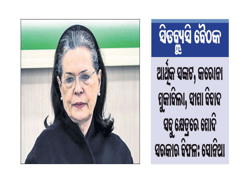 ନୂଆଦିଲ୍ଲୀ,୨୪ା୬: ଚାଇନାର ଅନୁପ୍ରବେଶକୁ ଅସ୍ବୀକାର କରିବା ମୋଦି ସରକାର ସୀମା ସ୍ଥିତିକୁ ଅତି ଖରାପ ଭାବେ ପରିଚାଳନା କରିଛନ୍ତି ବୋଲି କଂଗ୍ରେସ ଓ୍ବାର୍କିଂ କମିଟି (ସିଡବ୍ଲ୍ୟୁସି) ବୈଠକରେ ସମାଲୋଚନା କରାଯାଇଛି। ଏହି ଭର୍ଚୁଆଲ ବୈଠକରେ ଅଧ୍ୟକ୍ଷତା କରି କଂଗ୍ରେସ ମୁଖ୍ୟ ସୋନିଆ ଗାନ୍ଧୀ ବିଭିନ୍ନ ପ୍ରସଙ୍ଗରେ ମୋଦି ସରକାରଙ୍କୁ କାଠଗଡ଼ାରେ ଛିଡ଼ା କରାଇଛନ୍ତି।