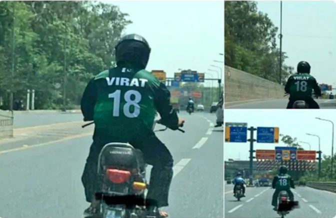 ଇସଲମାବାଦ୍, ୧୦।୬: ଭାରତୀୟ କ୍ରିକେଟ ଦଳର ଅଧିନାୟକ ବିରାଟ କୋହଲିଙ୍କ ପ୍ରଶଂସକ କେବଳ ଭାରତରେ ନୁହେଁ, ଦେଶ ବାହାରେ ମଧ୍ୟ ଅଛନ୍ତି। ନିକଟରେ କୋହଲିଙ୍କ ଜଣେ ବିରାଟ ପ୍ରଶଂସକ ପଡୋଶୀ ଦେଶ ପାକିସ୍ତାନରେ ଦେଖିବାକୁ ମିଳିଥିଲା। ସେ ସବୁଜ ରଙ୍ଗର ଟି-ଶାର୍ଟ ପିନ୍ଧିଥିଲେ। ଟି-ଶାର୍ଟର ପଛପଟେ ବିରାଟ ଲେଖାଯିବା ସହ କୋହଲିଙ୍କ ଜର୍ସି ସଂଖ୍ୟା ୧୮ ଲେଖାଯାଇଥିଲା। ଏହି ବ୍ୟକ୍ତି ଜଣଙ୍କର ଫଟୋ ଜଣେ ପ୍ରସିଦ୍ଧ ଖବରଦାତା ଉଠାଇ ନିଜ ଟୁଇଟରରେ ଶେୟାର କରିଥିଲେ। ଏହାପରେ ଫଟୋଟି ଭାଇରାଲ ହୋଇଥିଲା।