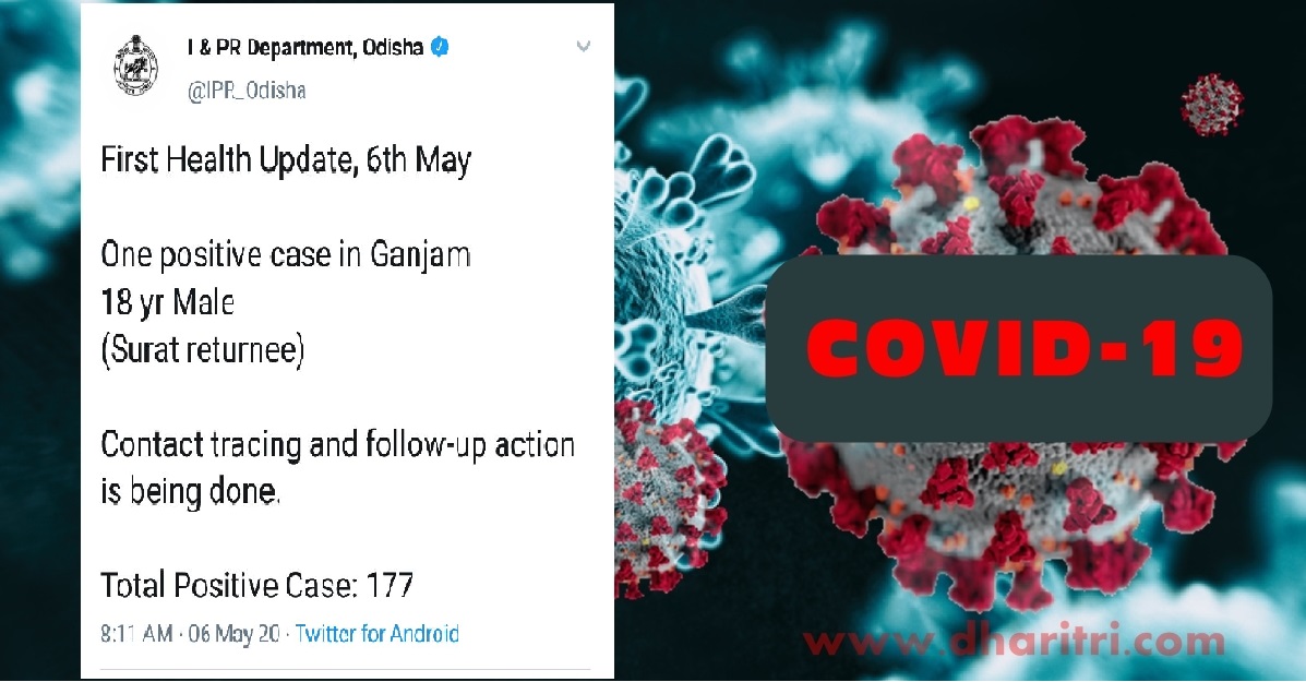 ଭୁବନେଶ୍ୱର,୬।୫(ବ୍ୟୁରୋ): ରାଜ୍ୟରେ ଆଉ ଜଣେ କରୋନା ପଜିଟିଭ ବୁଧବାର ଚିହ୍ନଟ ହୋଇଛନ୍ତି। ଏହାକୁ ମିଶାଇ ଓଡ଼ିଶାରେ ଆକ୍ରାନ୍ତଙ୍କ ସଂଖ୍ୟା ୧୭୭ରେ ପହଞ୍ଚିଛି। ତେବେ ଏହି ନୂଆ କରୋନା ଆକ୍ରାନ୍ତ ଜଣଙ୍କ ଗଞ୍ଜାମ ଜିଲାର। ସେ ଜଣେ ୧୮ ବର୍ଷ ବୟସ୍କ ଯୁବକ ହୋଇଥିବା ବେଳେ ନିକଟରେ ସୁରଟରୁ ଫେରିଥିଲେ। ଏ ନେଇ ସ୍ବାସ୍ଥ୍ୟ ଓ ପରିବାର କଲ୍ୟାଣ ବିଭାଗ ଓ୍ବେବ୍‌ସାଇଟରୁ ସୂଚନା ମିଳିଛି। ତେବେ ଏହାକୁ ମିଶାଇ ଗଞ୍ଜାମ ଜିଲାରେ କରୋନା ଆକ୍ରାନ୍ତଙ୍କ ସଂଖ୍ୟା ୪କୁ ବୃଦ୍ଧି ପାଇଛି।